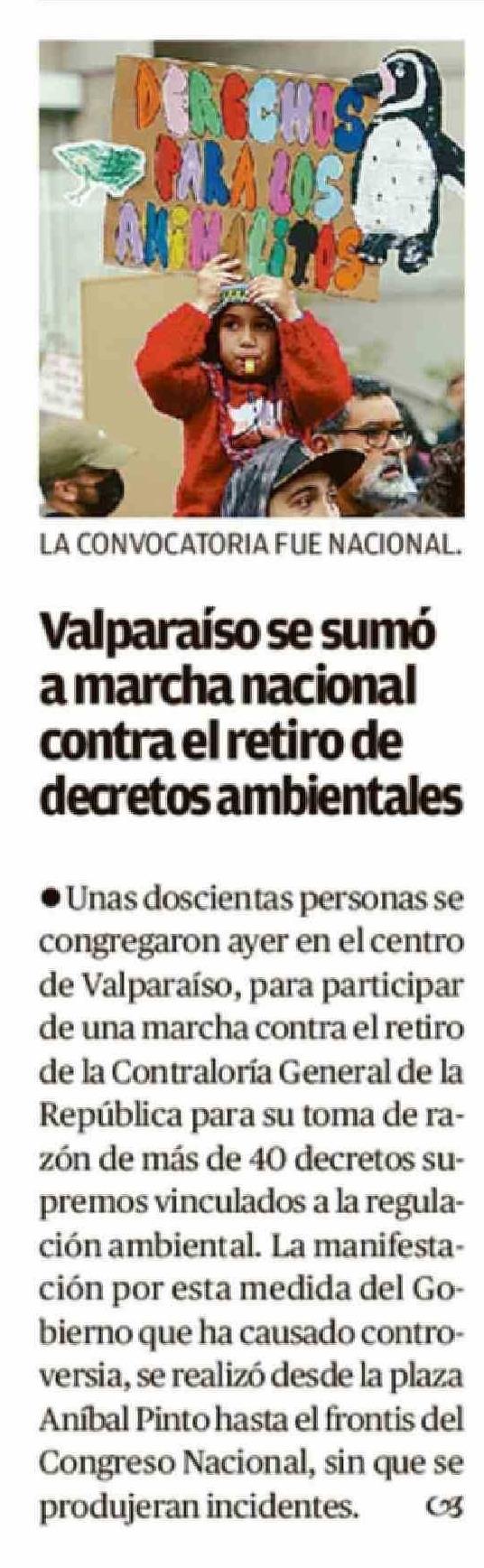 Valparaíso se sumó a marcha nacional contra el retiro de decretos ambientales 23-03-2026 El Mercurio de Valparaíso |