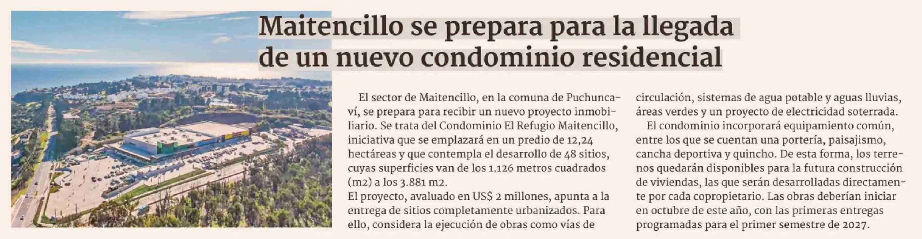| Título: | Maitencillo se prepara para la llegada de un nuevo condominio residencial |