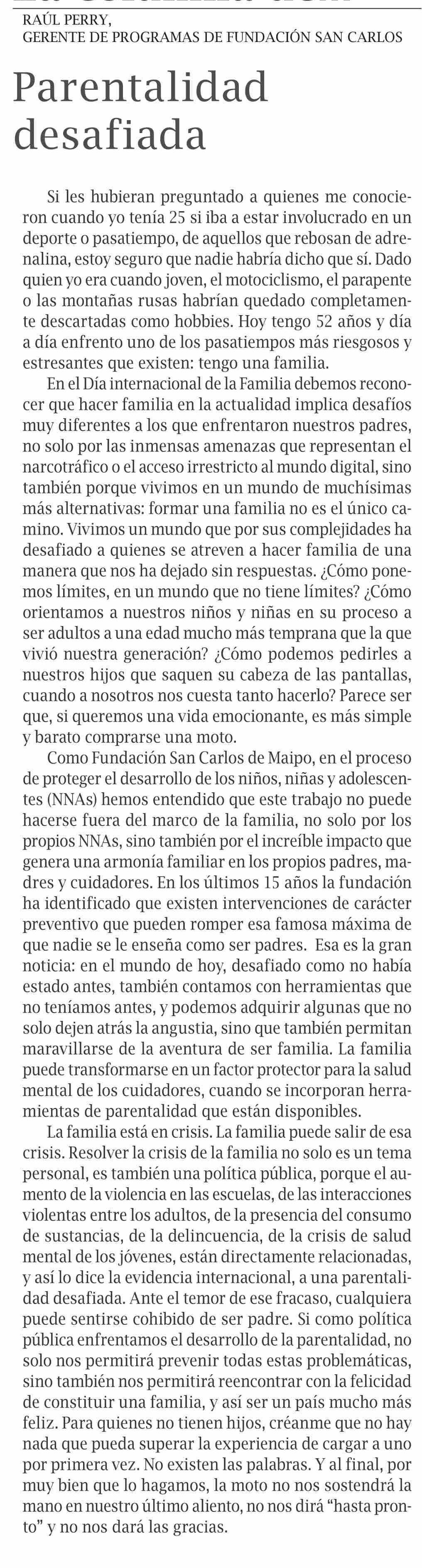 | Título: | Columnas de Opinión: Parentalidad desafiada |