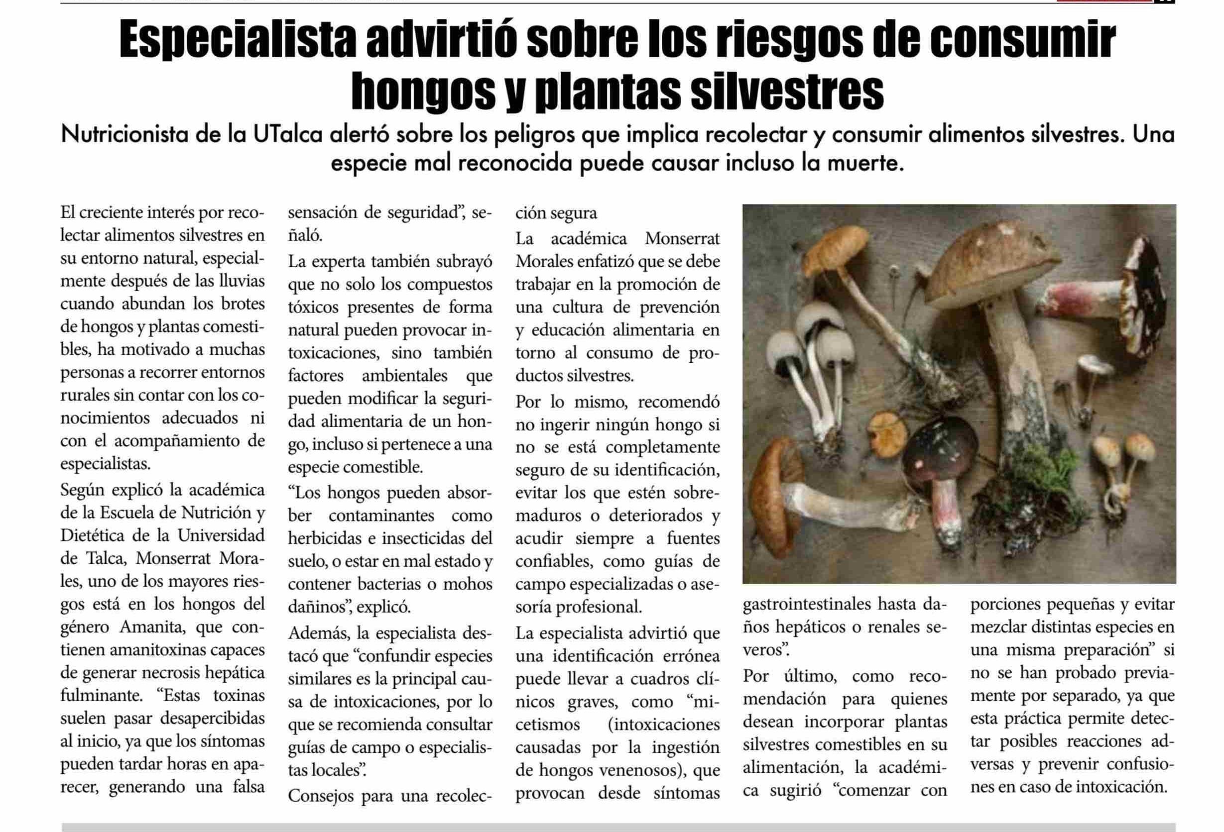 Especialista advirtió sobre los riesgos de consumir hongos y plantas silvestres 24-06-2025 El Lector |