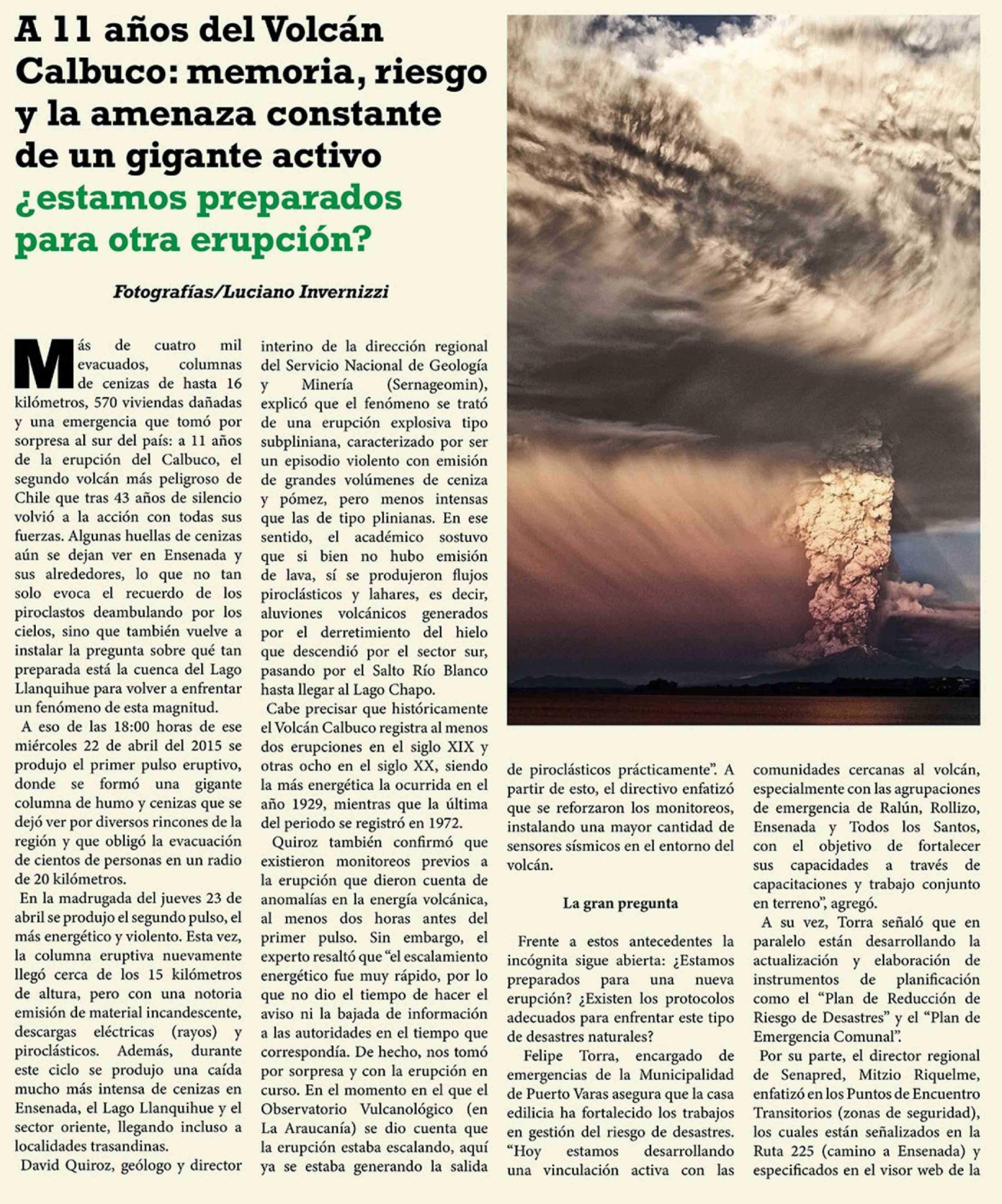 Título: A 11 años del Volcán Calbuco: memoria, riesgo y la amenaza constante de un gigante activo ¿estamos preparados para otra erupción?