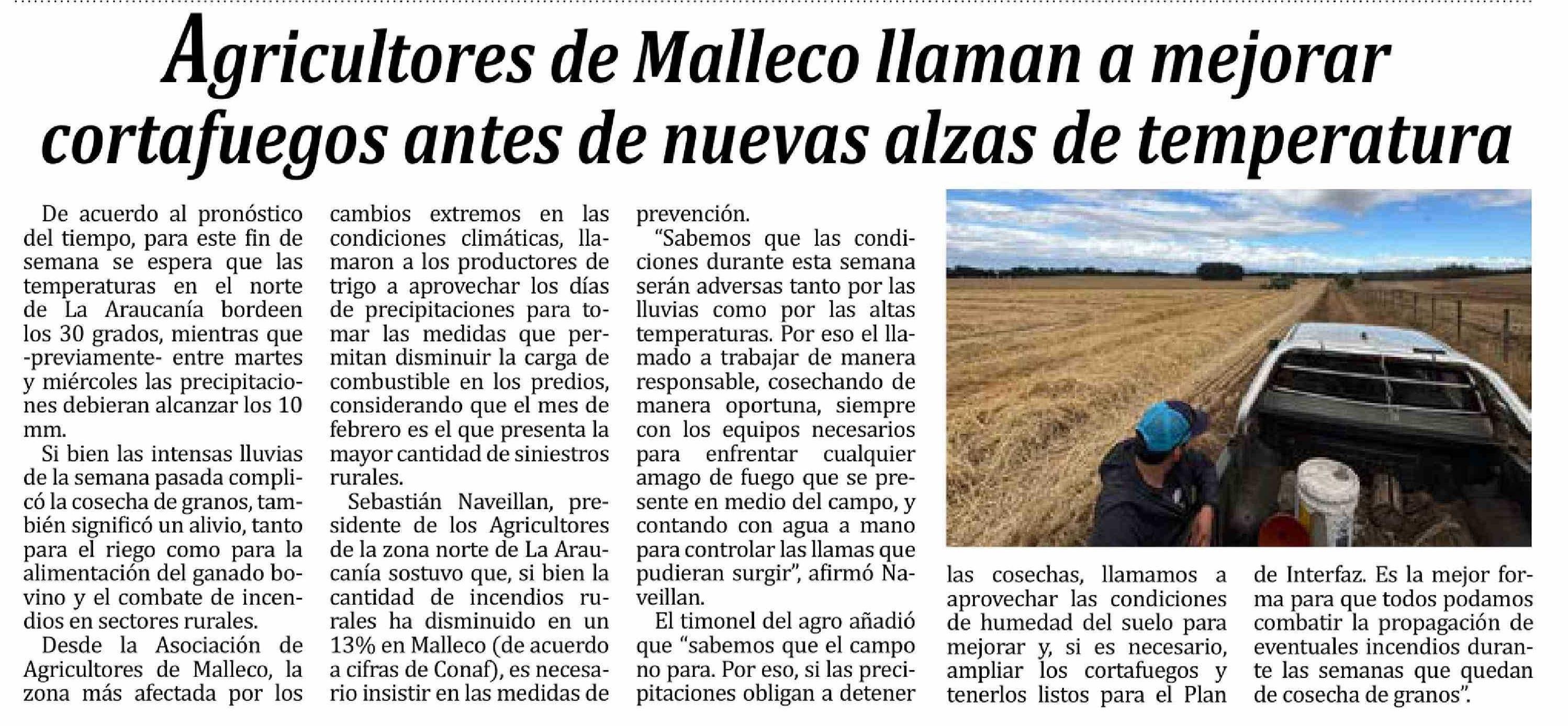 Título: Agricultores de Malleco llaman a mejorar cortafuegos antes de nuevas alzas de temperatura