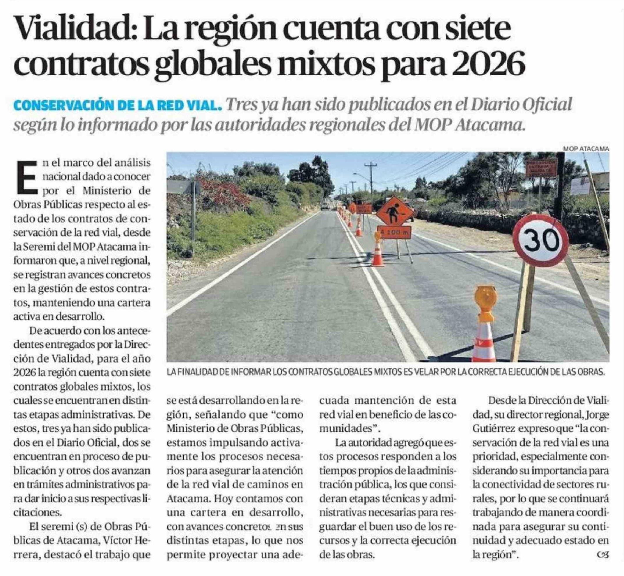 Título: Vialidad: La región cuenta con siete contratos globales mixtos para 2026