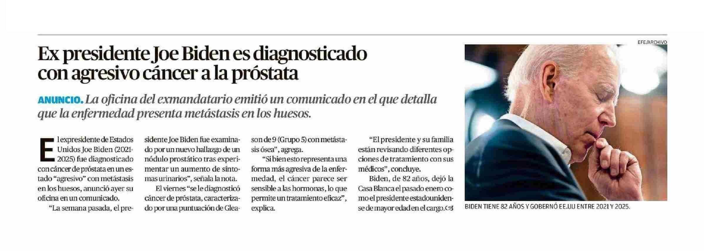 | Título: | Ex presidente Joe Biden es diagnosticado con agresivo cáncer a la próstata |