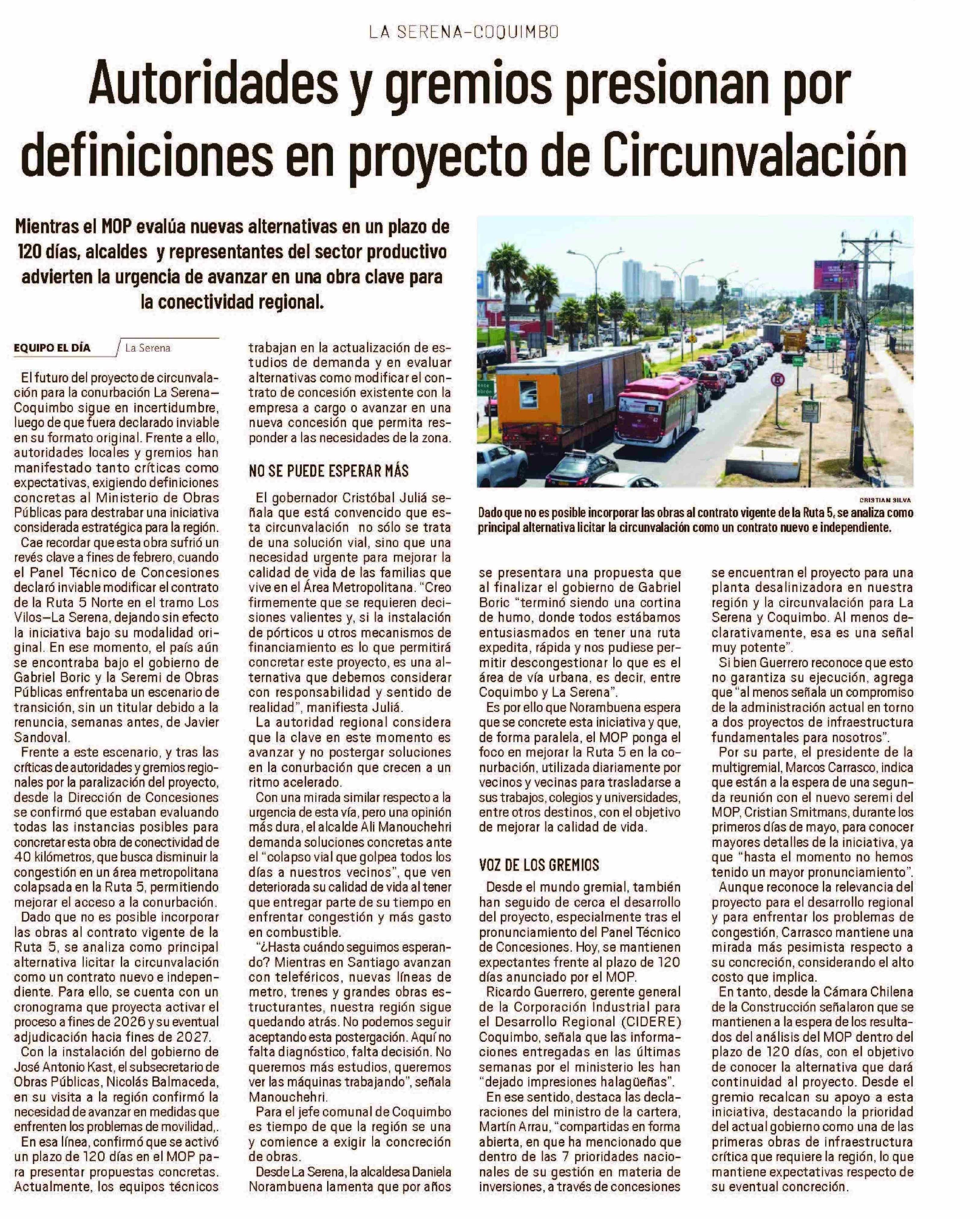 Título: Autoridades y gremios presionan por definiciones en proyecto de Circunvalación
