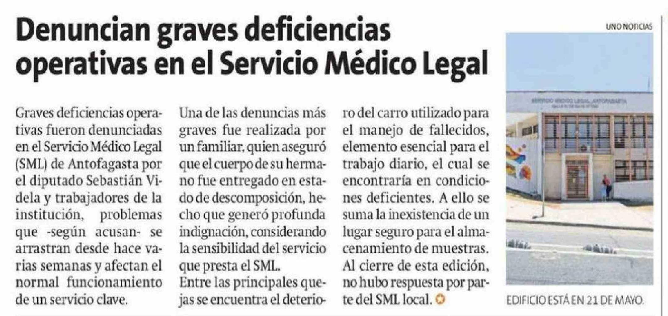 Denuncian graves deficiencias operativas en el Servicio Médico Legal 07-01-2026 La Estrella de Antofagasta |