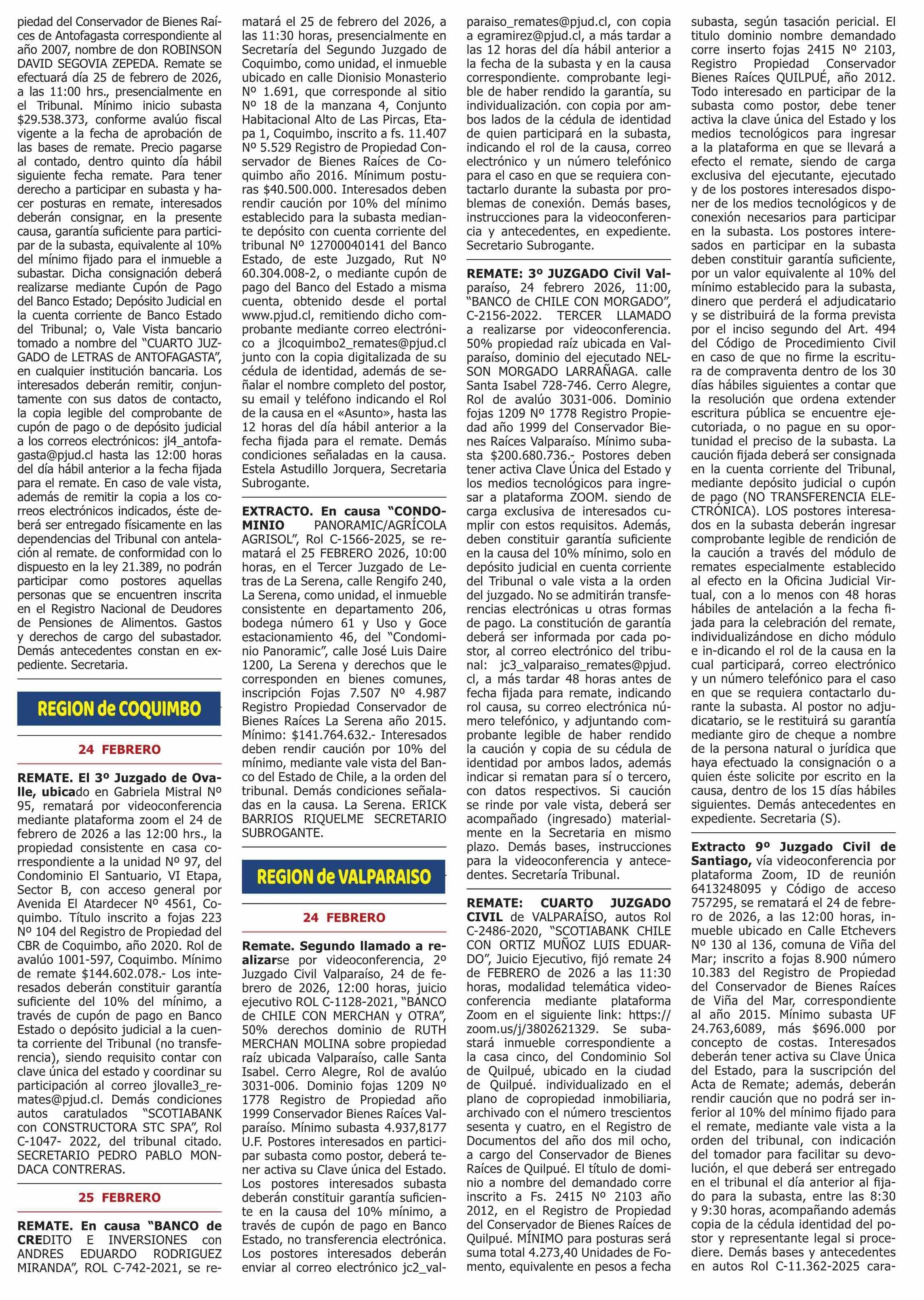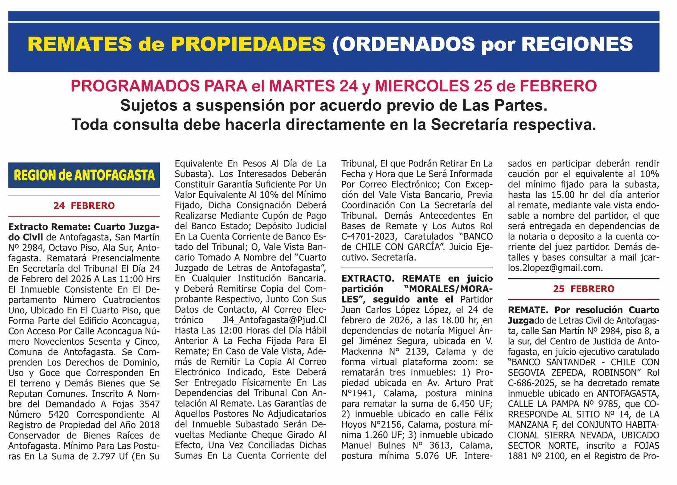 REMATES: REMATES de PROPIEDADES (ORDENADOS por REGIONES 19-02-2026 P&L Públicos y Legales |