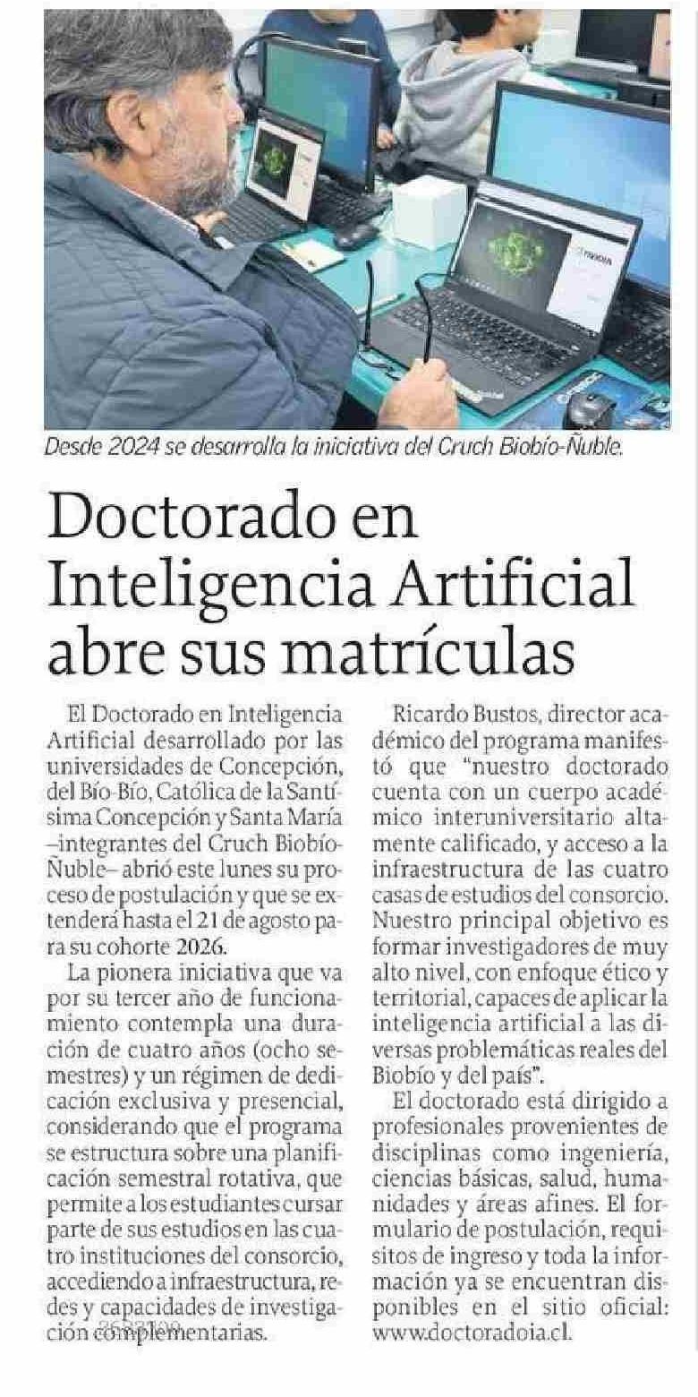 Doctorado en Inteligencia Artificial abre sus matrículas 17-06-2025 El Sur |
