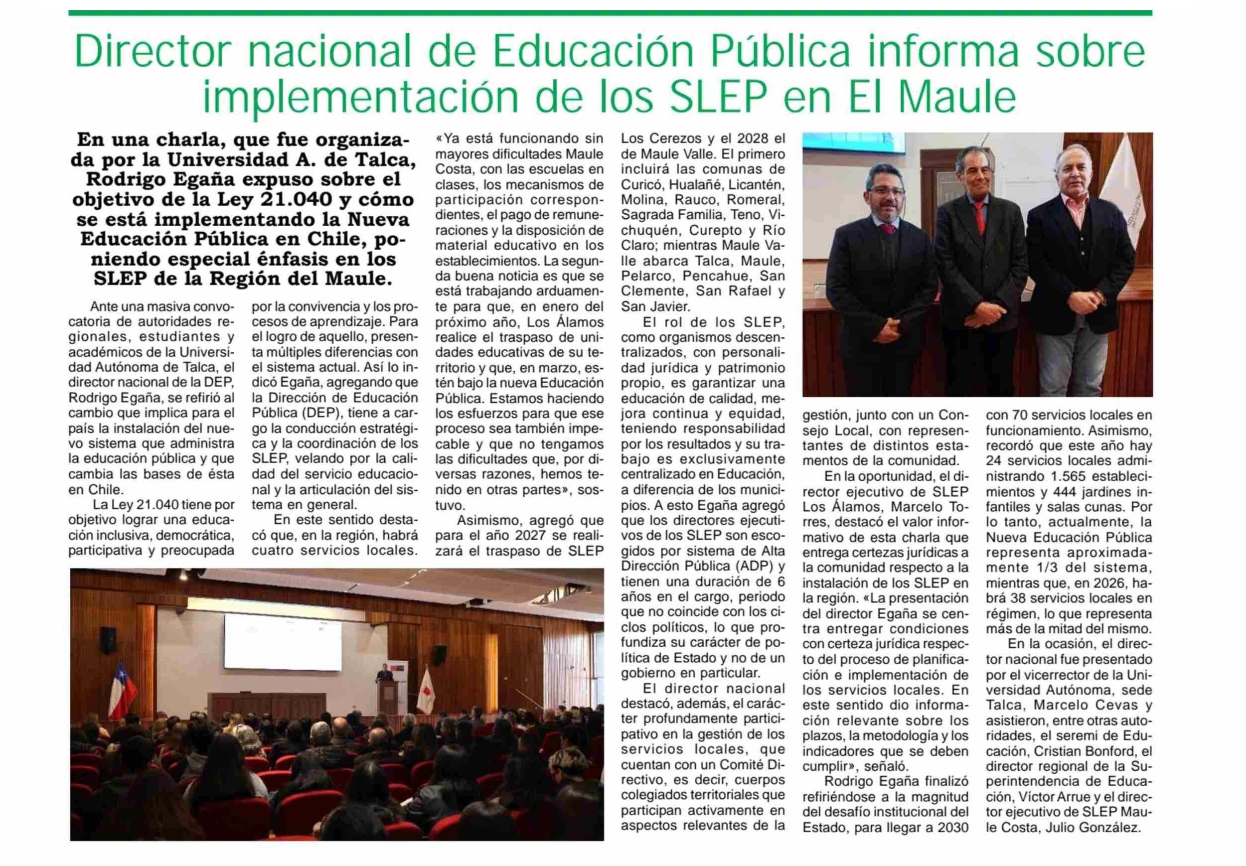 Director nacional de Educación Pública informa sobre implementación de los SLEP en El Maule 20-06-2025 Maule Hoy |