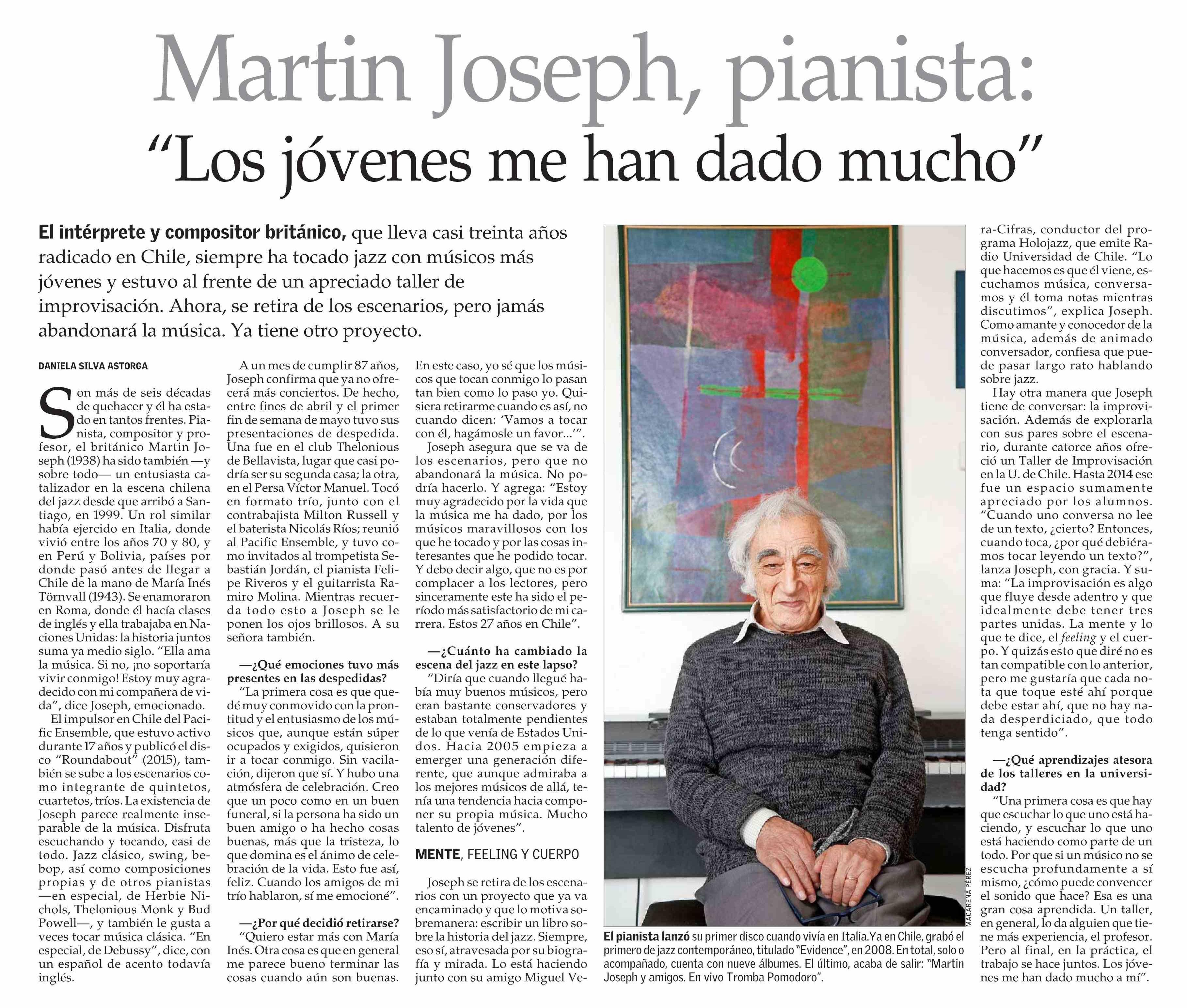Martin Joseph, pianista: “Los jóvenes me han dado mucho” 19-05-2025 El Mercurio |