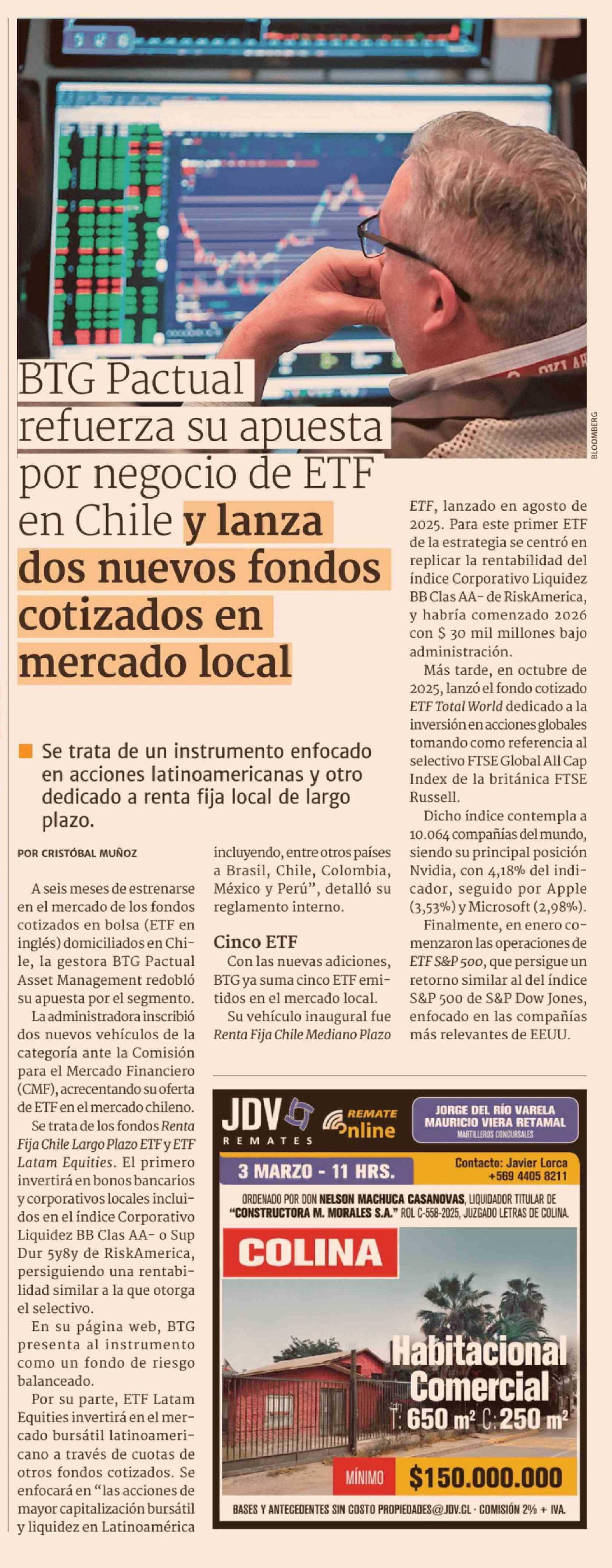BTG Pactual refuerza su apuesta por negocio de ETF en Chile y lanza dos nuevos fondos cotizados en mercado local 26-02-2026 Diario Financiero |
