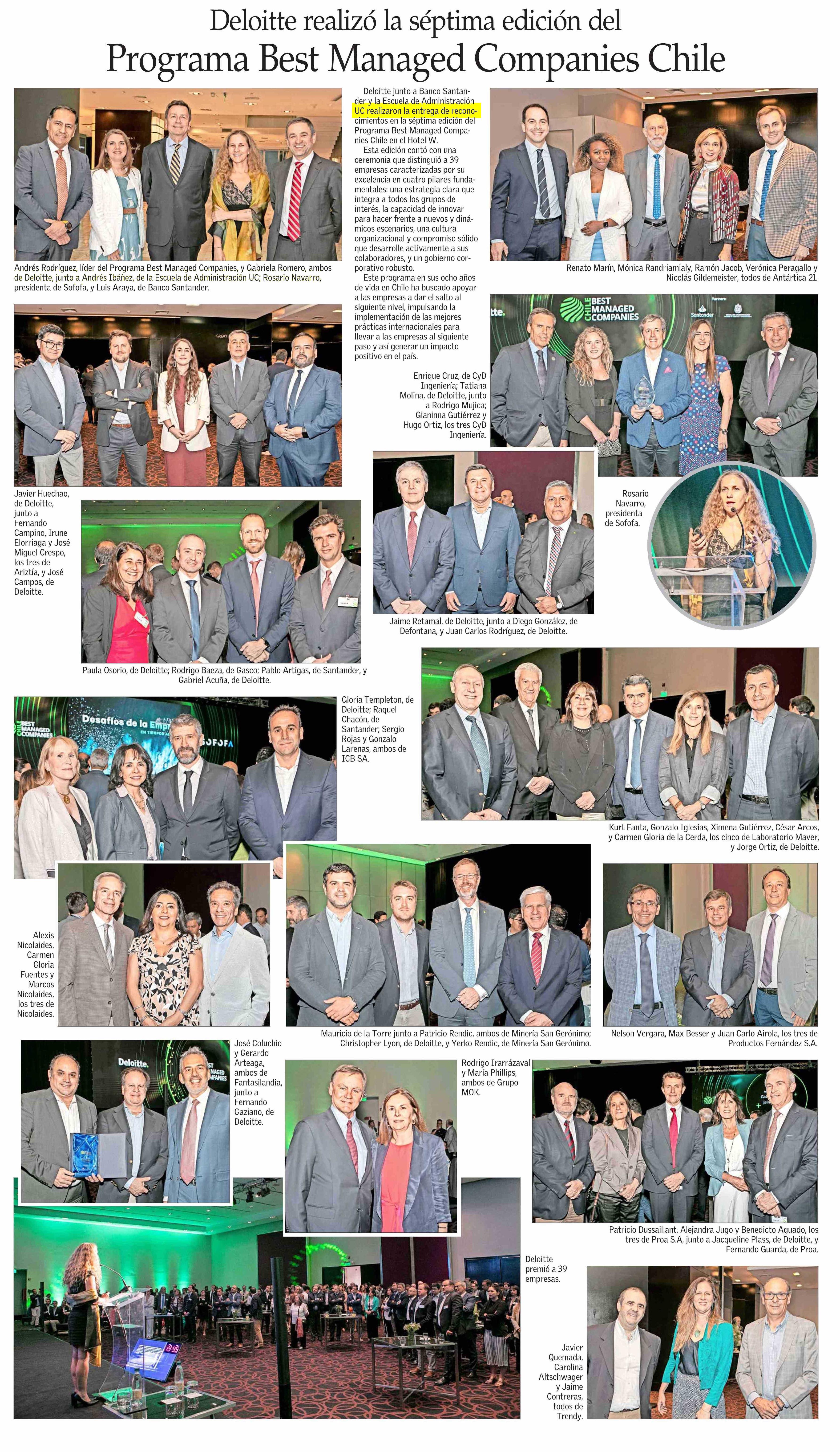 Deloitte realizó la séptima edición del Programa Best Managed Companies Chile 14-12-2024 El Mercurio |