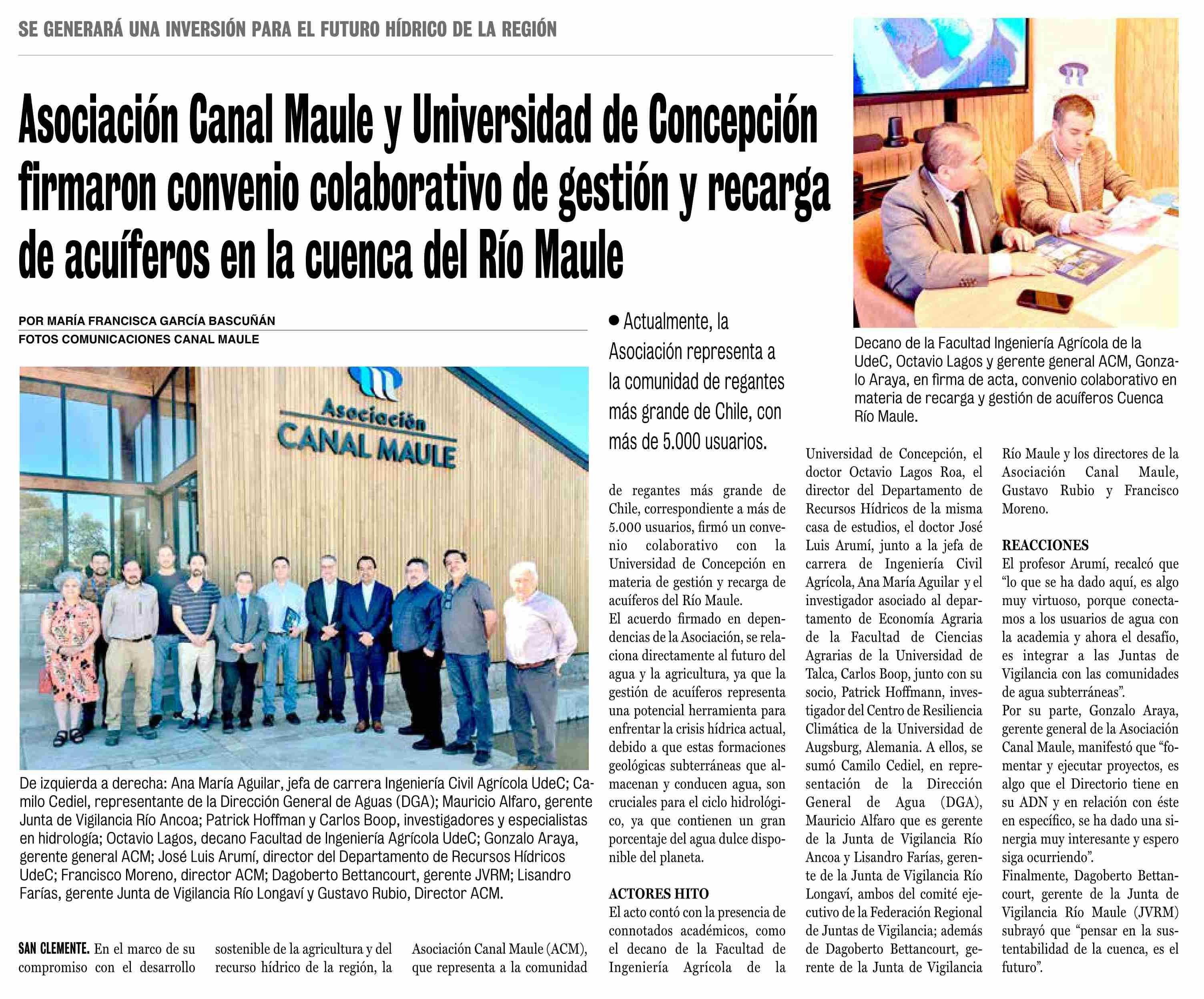 Título: Asociación Canal Maule y Universidad de Concepción firmaron convenio colaborativo de gestión y recarga de acuíferos en la cuenca del Río Maule