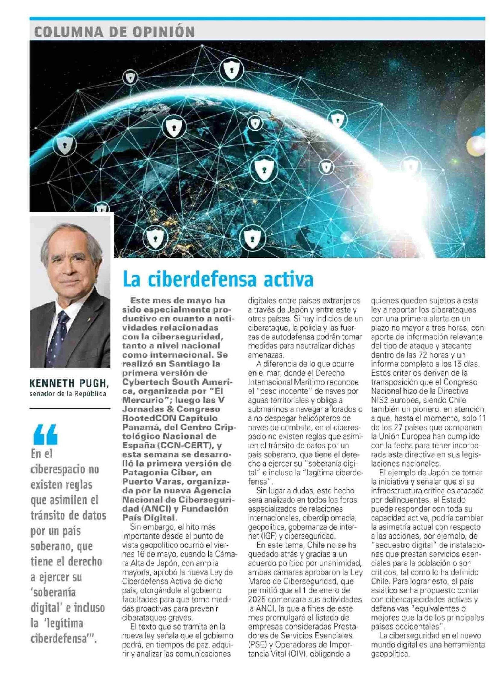 COLUMNAS DE OPINIÓN: La ciberdefensa activa 30-05-2025 El Mercurio |