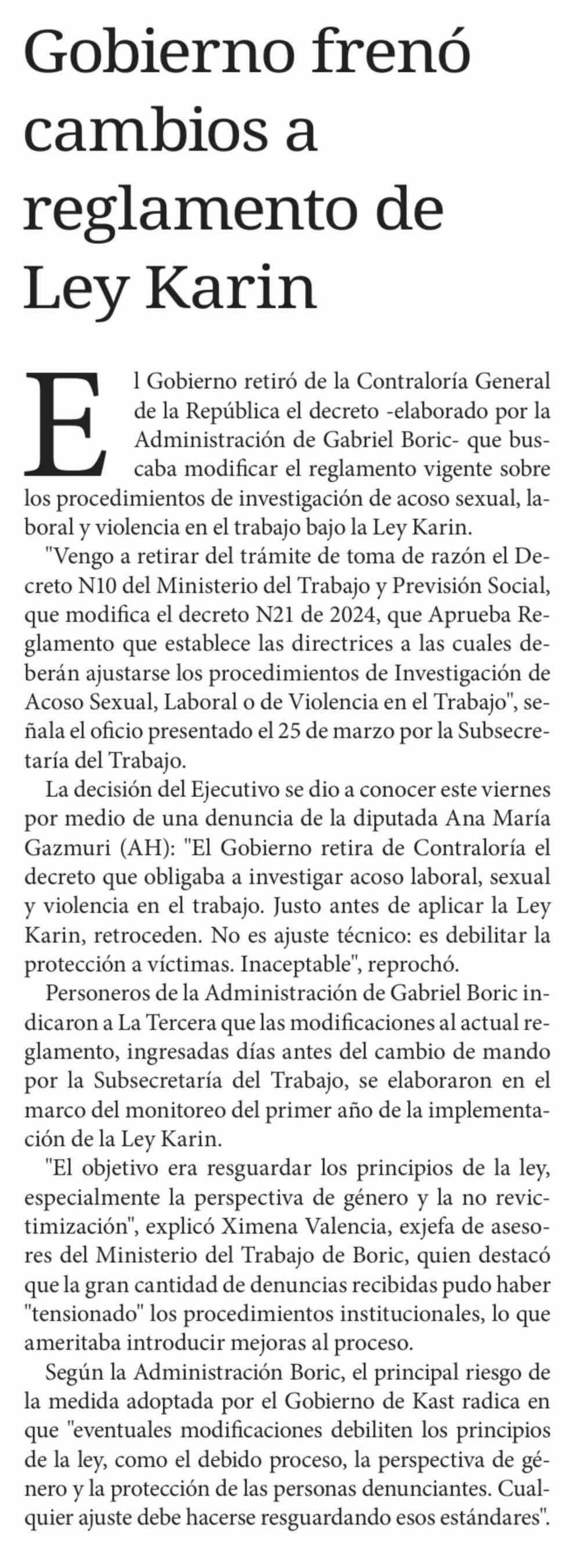 Gobierno frenó cambios a reglamento de Ley Karin 05-04-2026 Diario Chañarcillo |