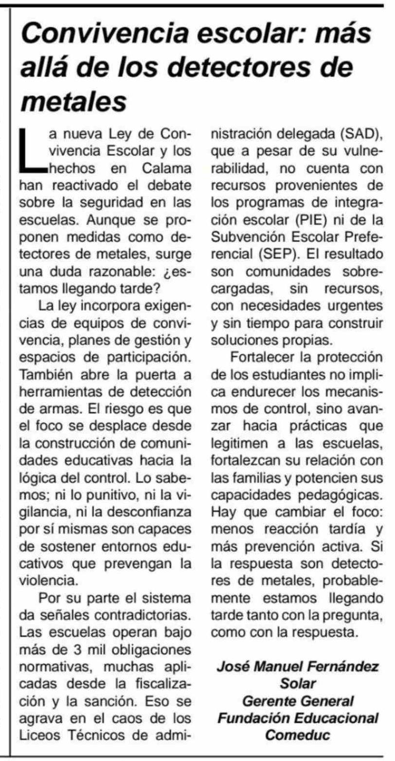 Título: Columnas de Opinión: Convivencia escolar: más allá de los detectores de metales