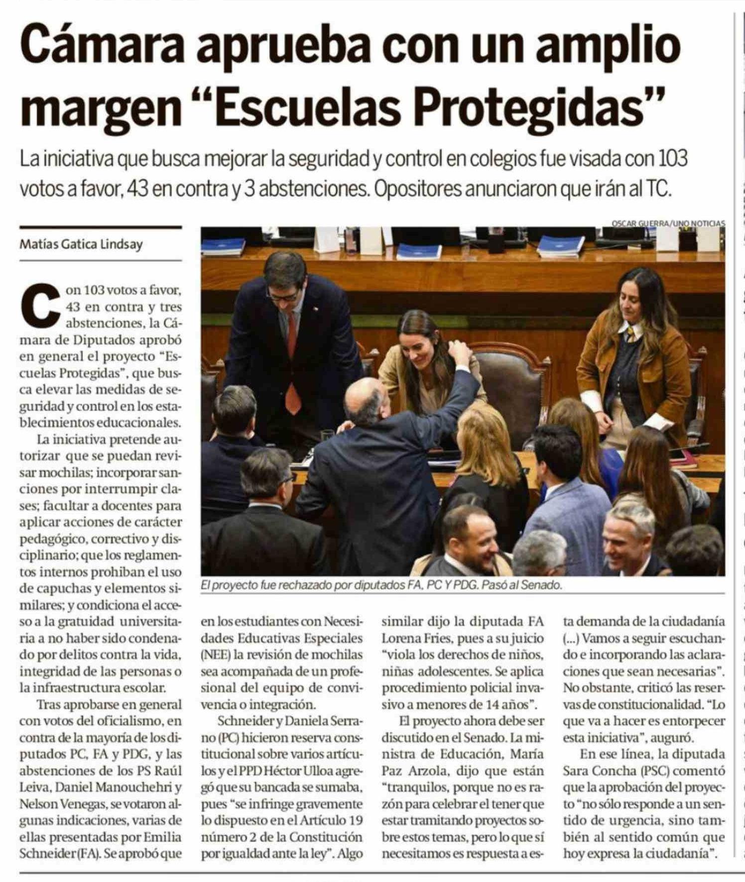 | Título: | Cámara aprueba con un amplio margen "Escuelas Protegidas" |