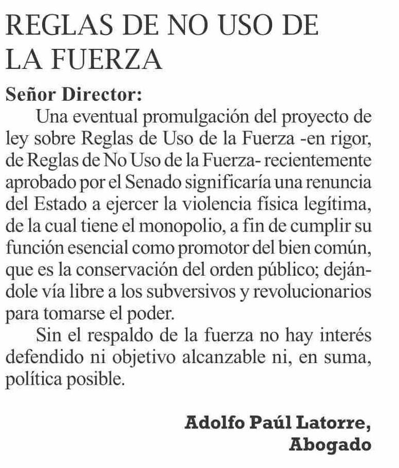 CARTAS: REGLAS DE NO USO DE LA FUERZA