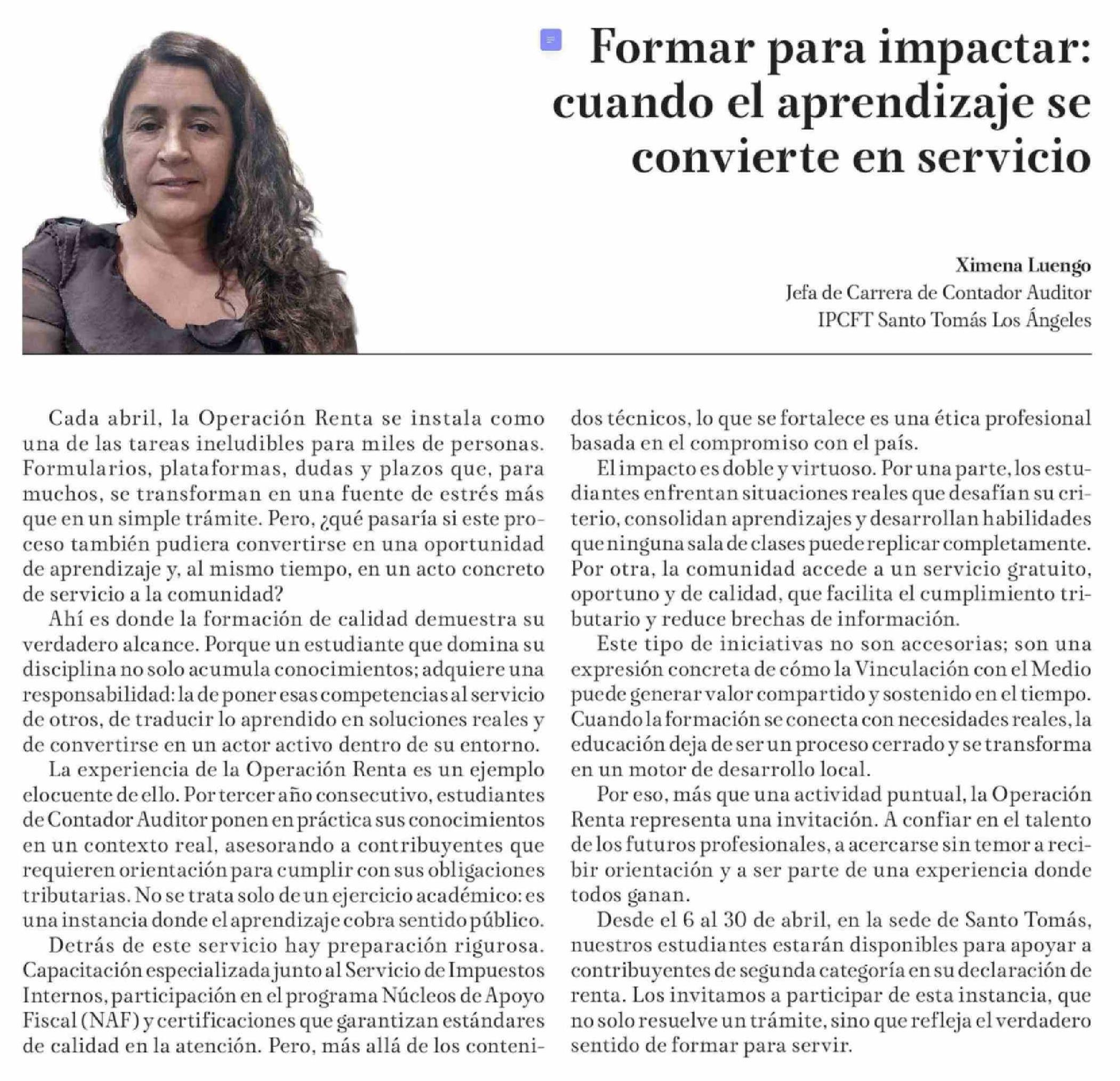 Título: Columnas de Opinión: Formar para impactar: cuando el aprendizaje se convierte en servicio