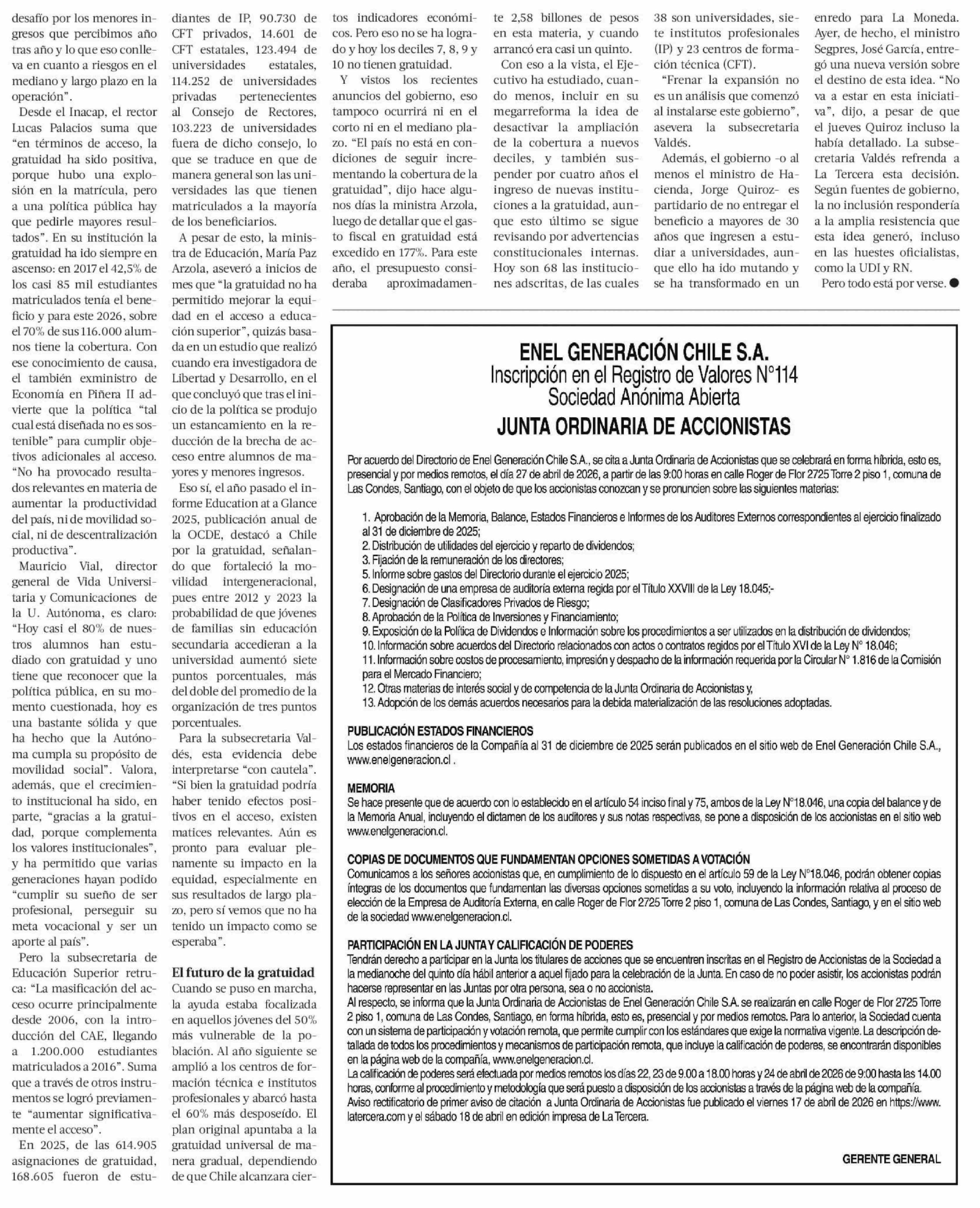10 Años de la gratuidad: 1,5 millones de beneficiarios, 485 mil titulados 18-04-2026 La Tercera |
