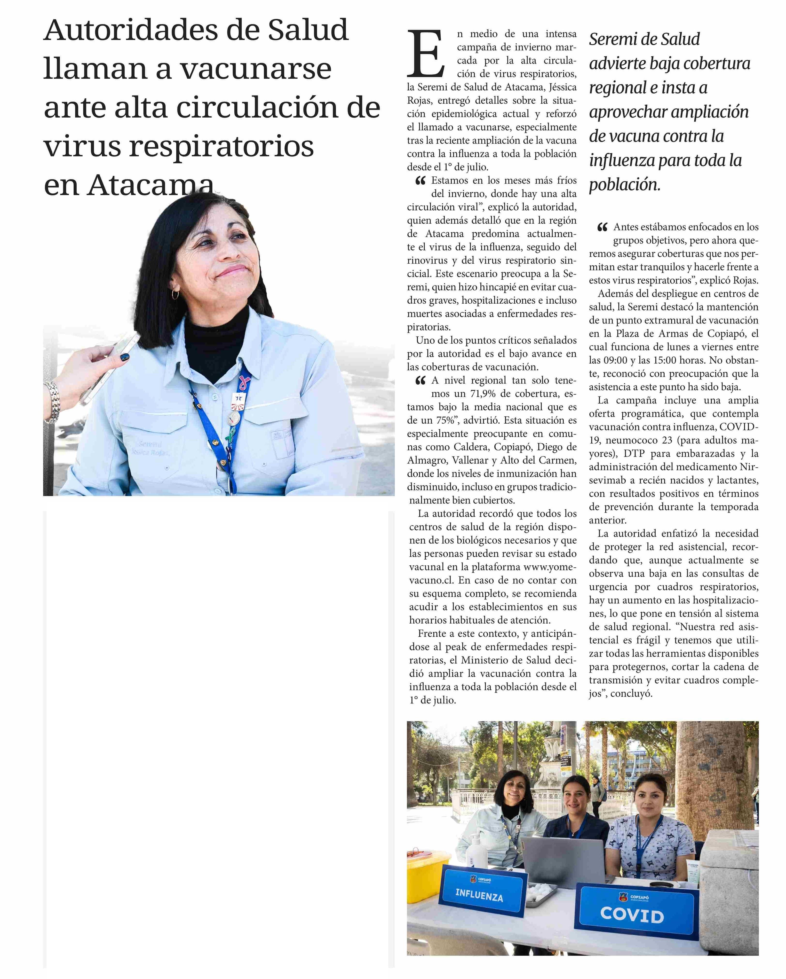Autoridades de Salud llaman a vacunarse ante alta circulación de virus respiratorios 03-07-2025 Diario Chañarcillo |