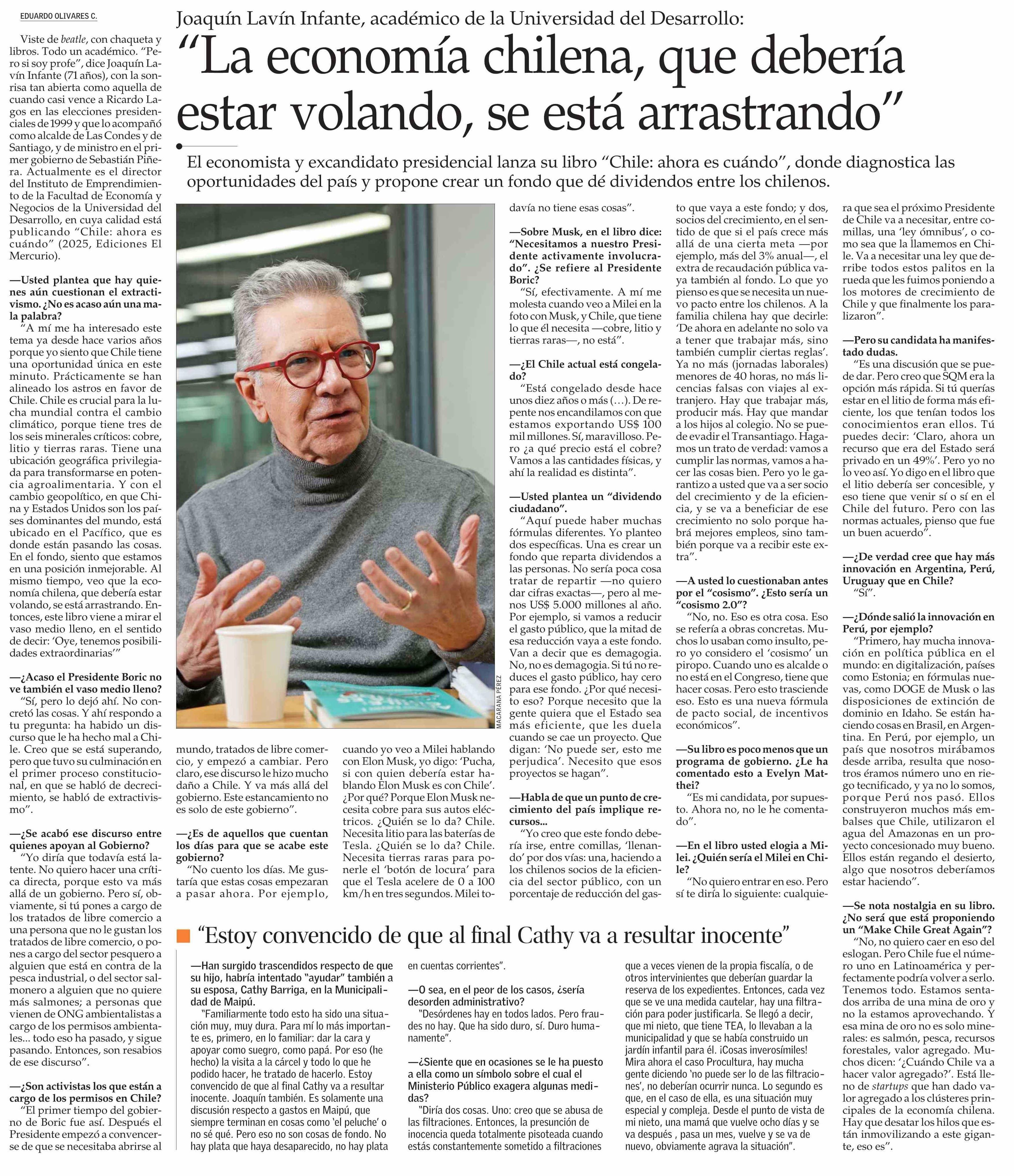 | Título: | “La economía chilena, que debería estar volando, se está arrastrando” |