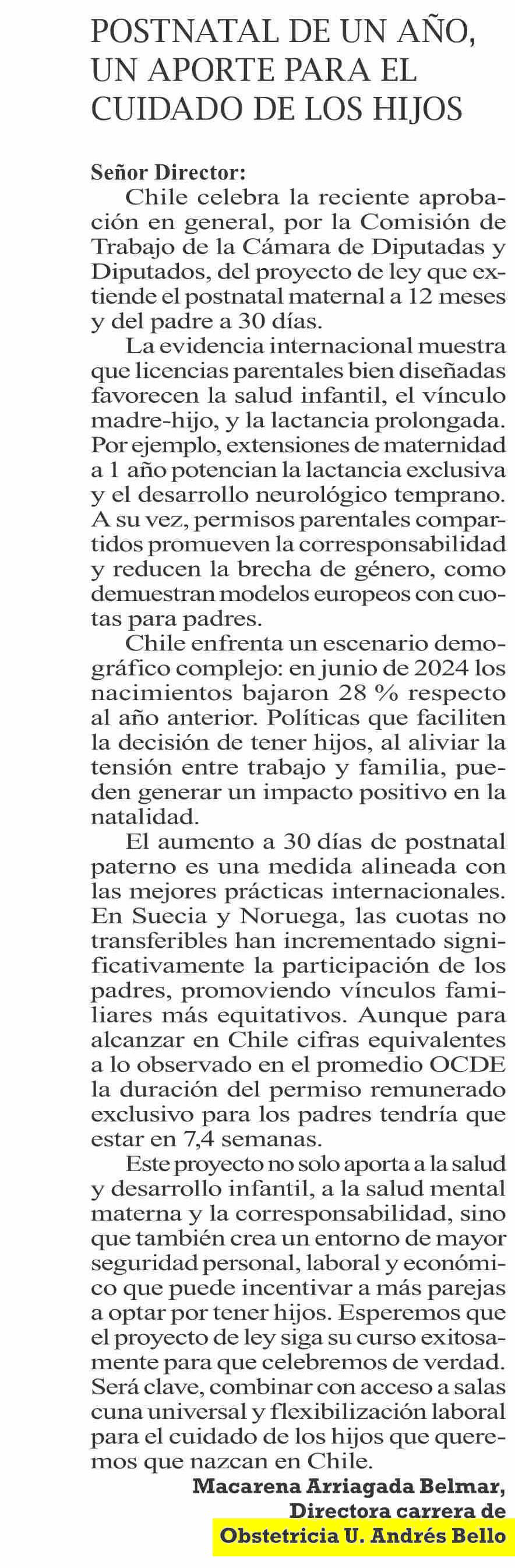 CARTAS: POSTNATAL DE UN AÑO, UN APORTE PARA EL CUIDADO DE LOS HIJOS 12-06-2025 El Pingüino |