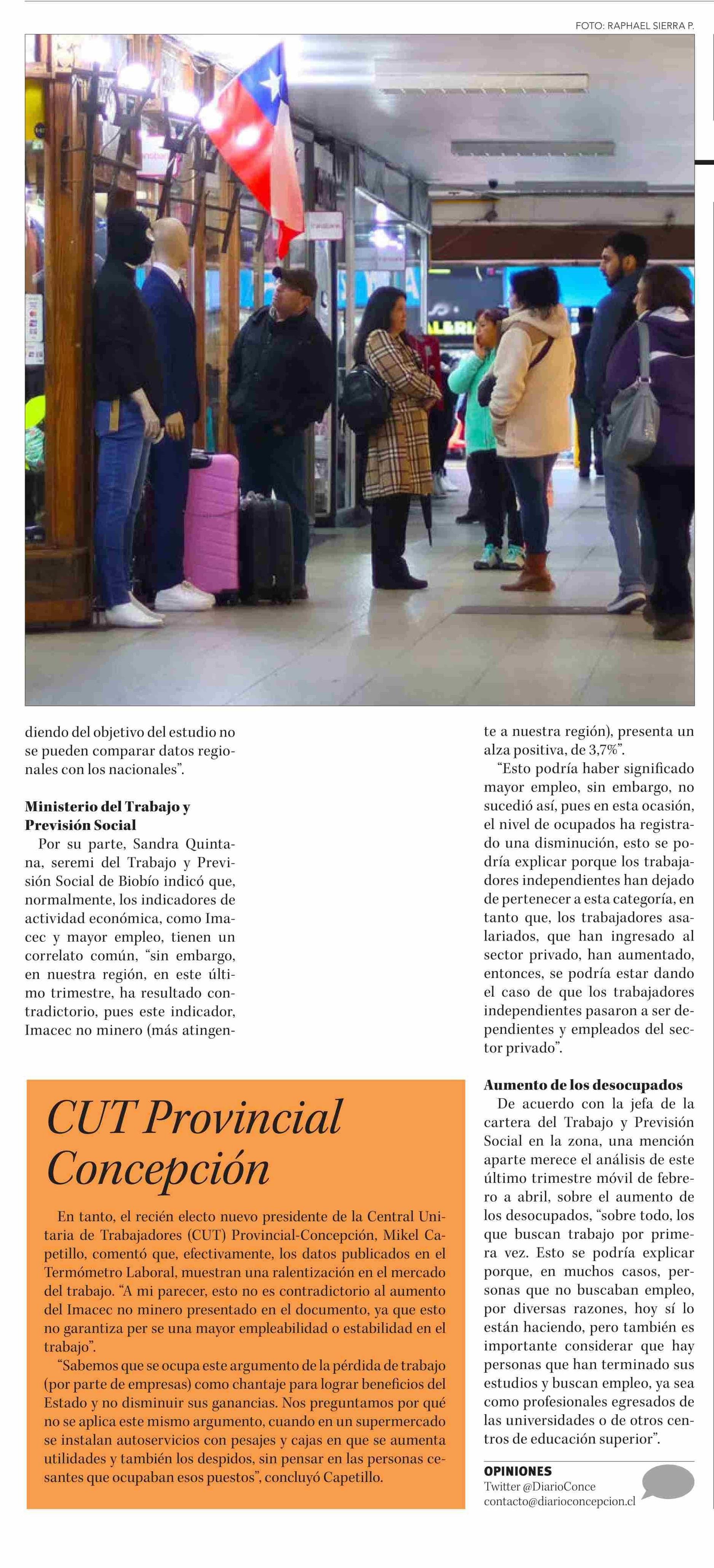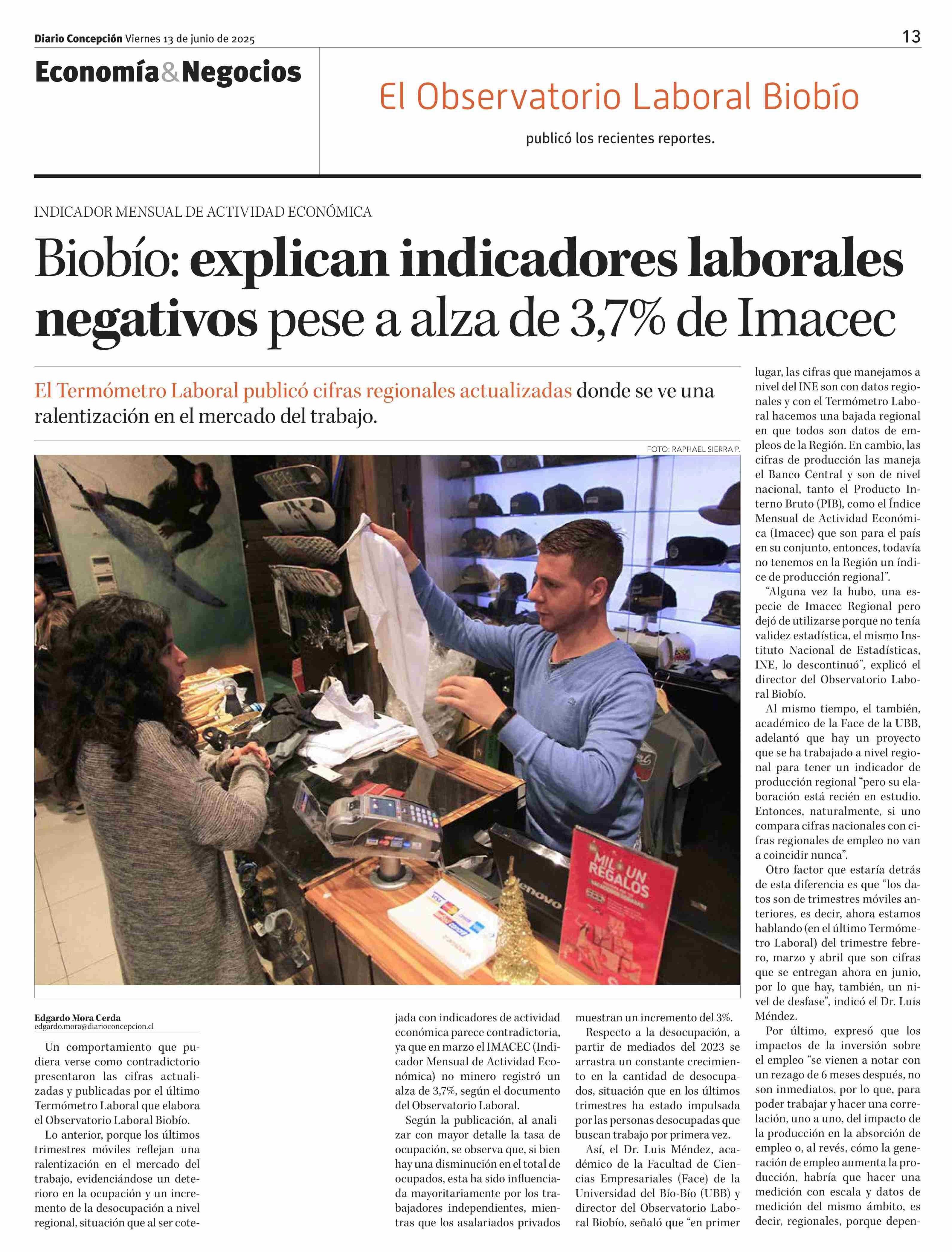Biobío: explican indicadores laborales negativos pese a alza de 3,7% de Imacec 13-06-2025 Diario Concepción |