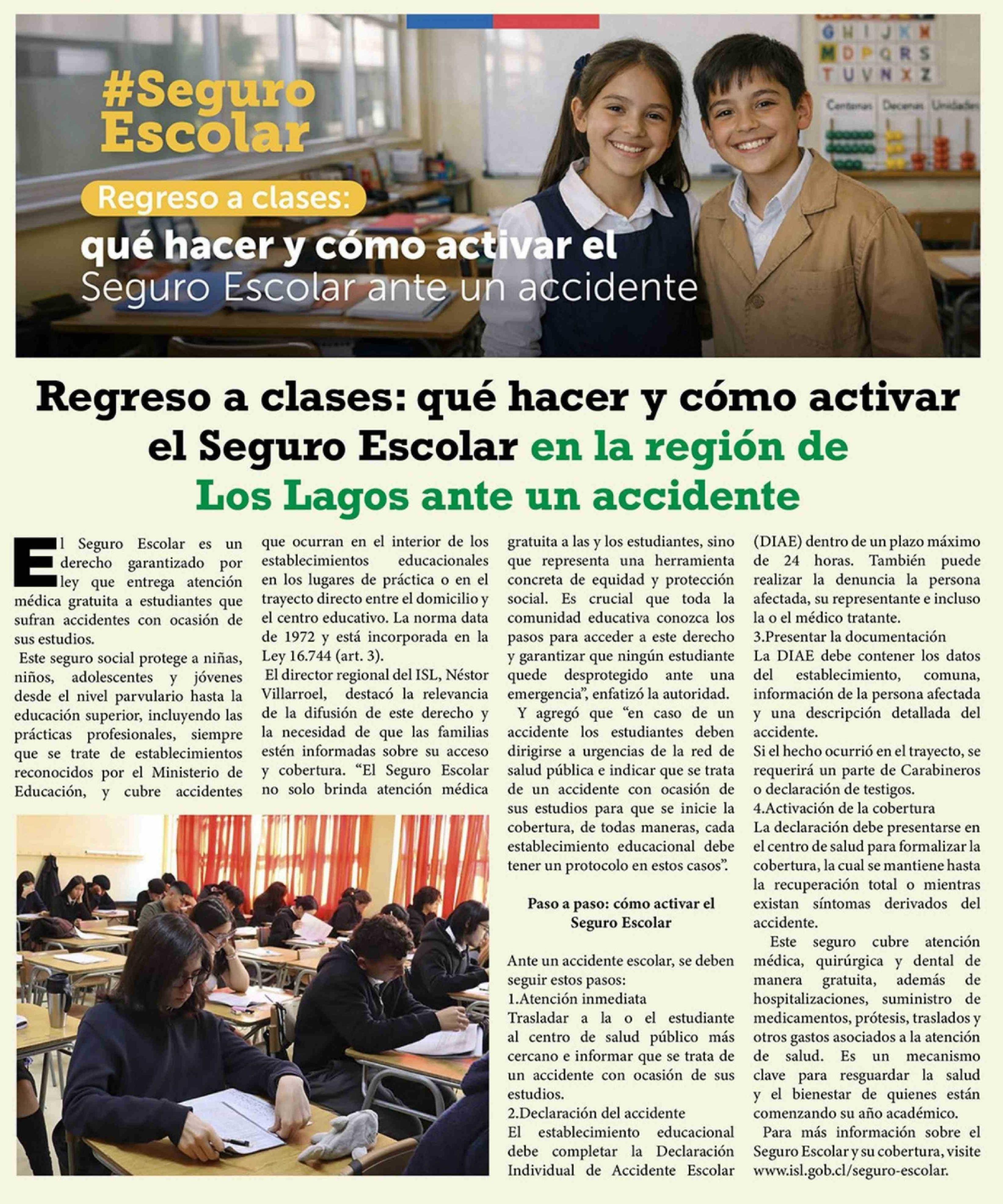 Regreso a clases: qué hacer y como activar el Seguro Escolar en la región de Los Lagos ante un accidente 24-03-2026 El Heraldo Austral |
