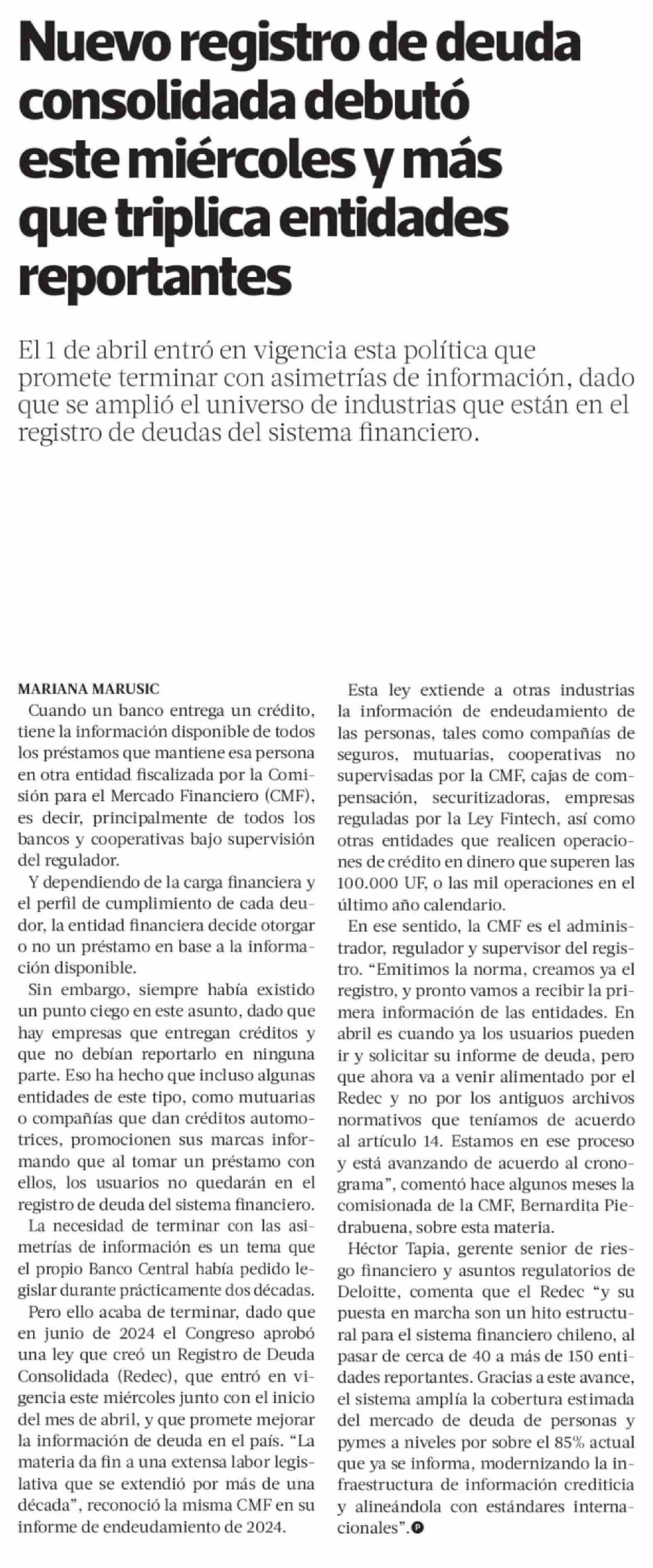 Nuevo registro de deuda consolidada debutó este miércoles y más que triplica entidades reportantes 02-04-2026 La Tercera |