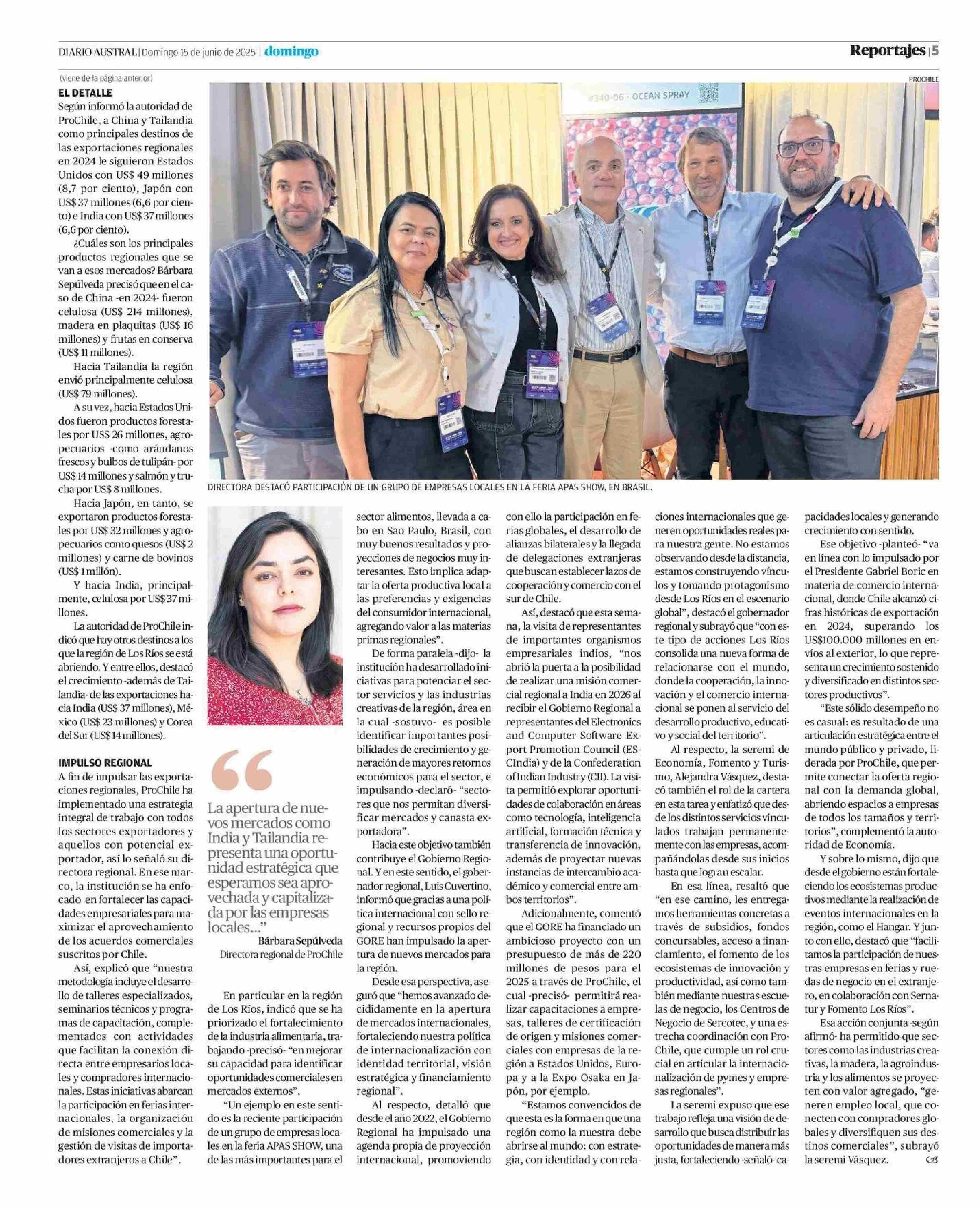 China y Tailandia: Principales destinos de las exportaciones regionales 15-06-2025 Diario Austral Región de Los Ríos |