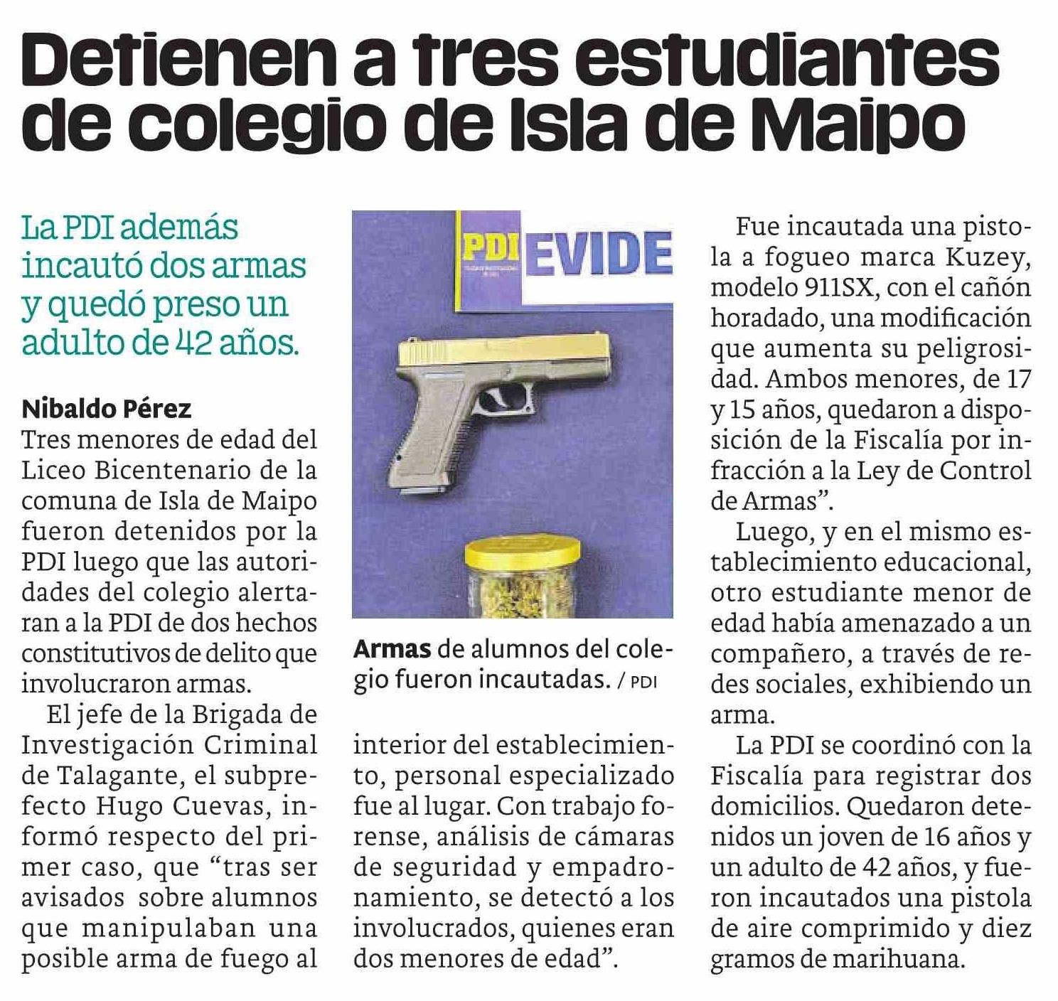 | Título: | Detienen a tres estudiantes de colegio de Isla de Maipo |