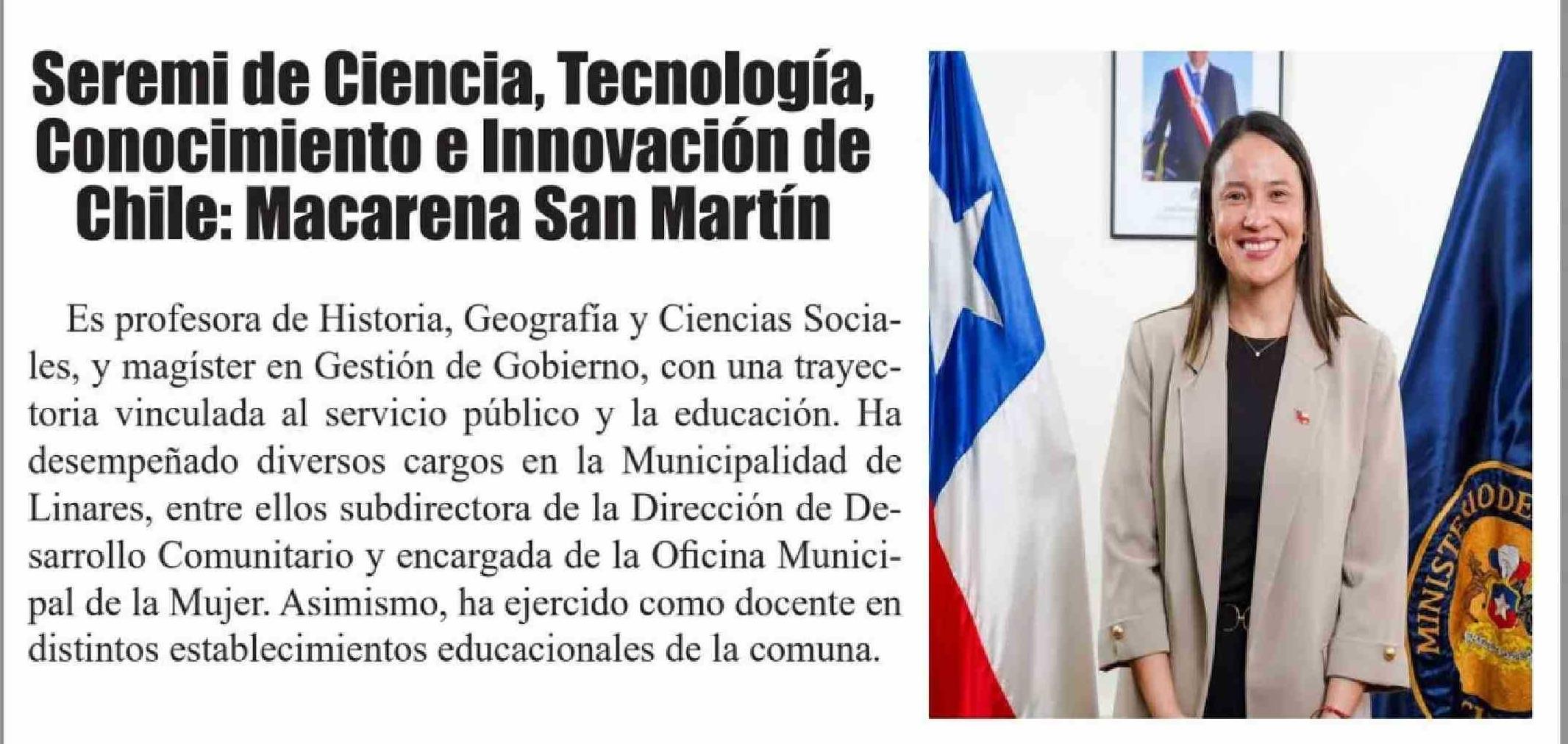 Seremi de Ciencia, Tecnología, Conocimiento e Innovación de Chile: Macarena San Martín 31-03-2026 El Heraldo |