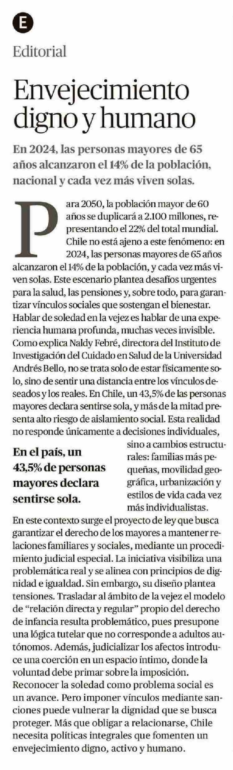 Editorial: Envejecimiento digno y humano 12-01-2026 Diario Austral Región de Los Ríos |
