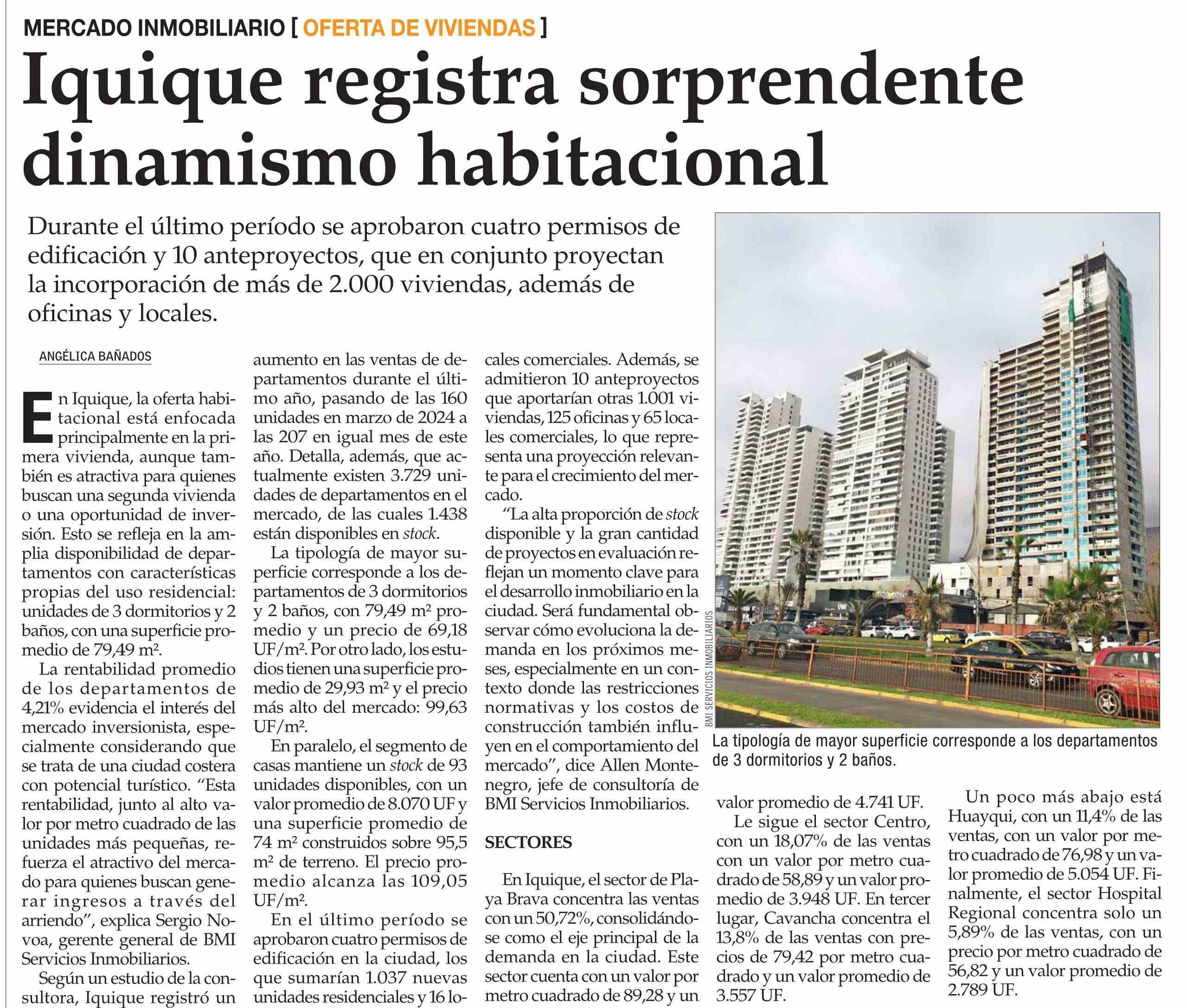 Iquique registra sorprendente dinamismo habitacional 01-06-2025 El Mercurio |