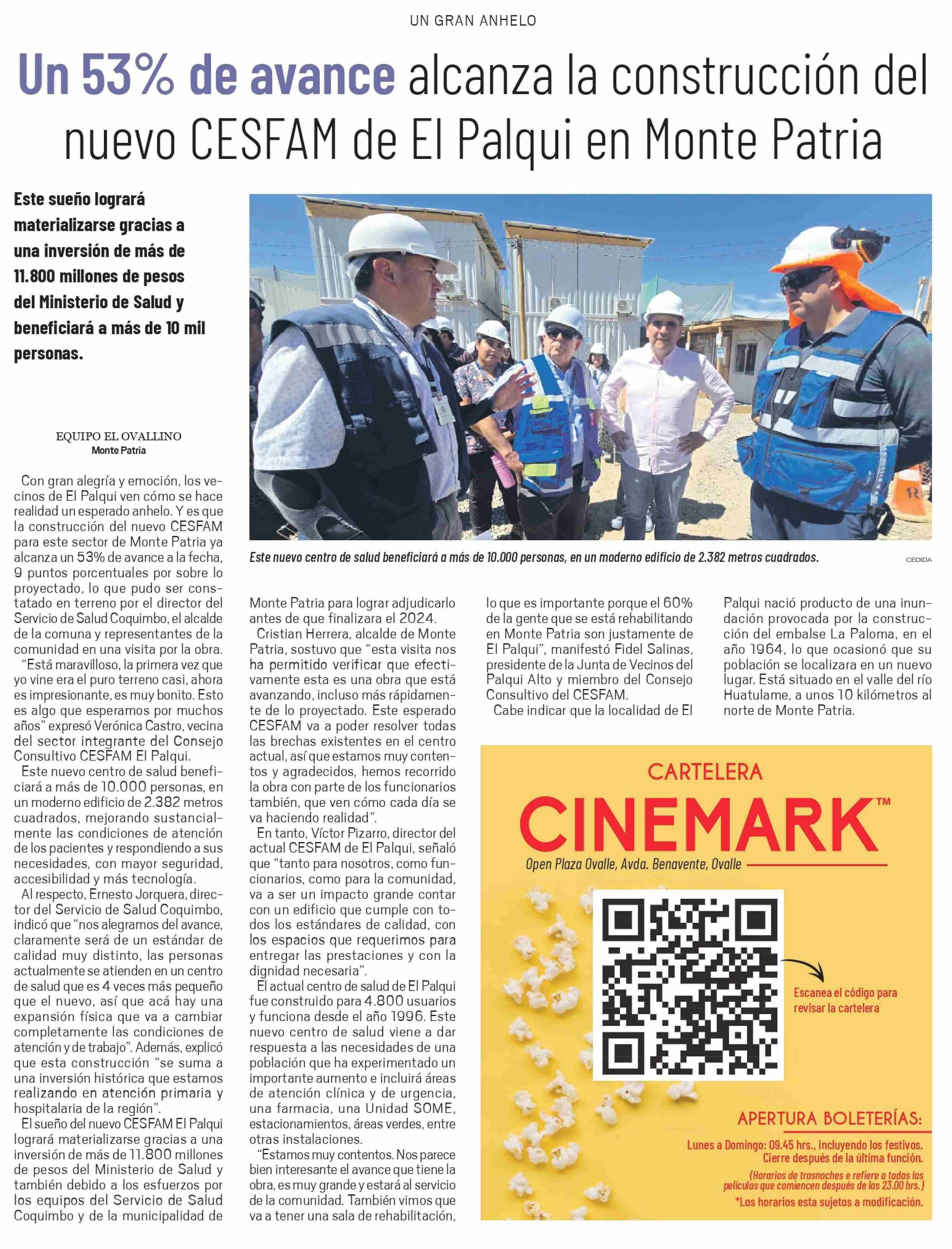 Título: Un 53% de avance alcanza la construcción del nuevo CESFAM de El Palqui en Monte Patria