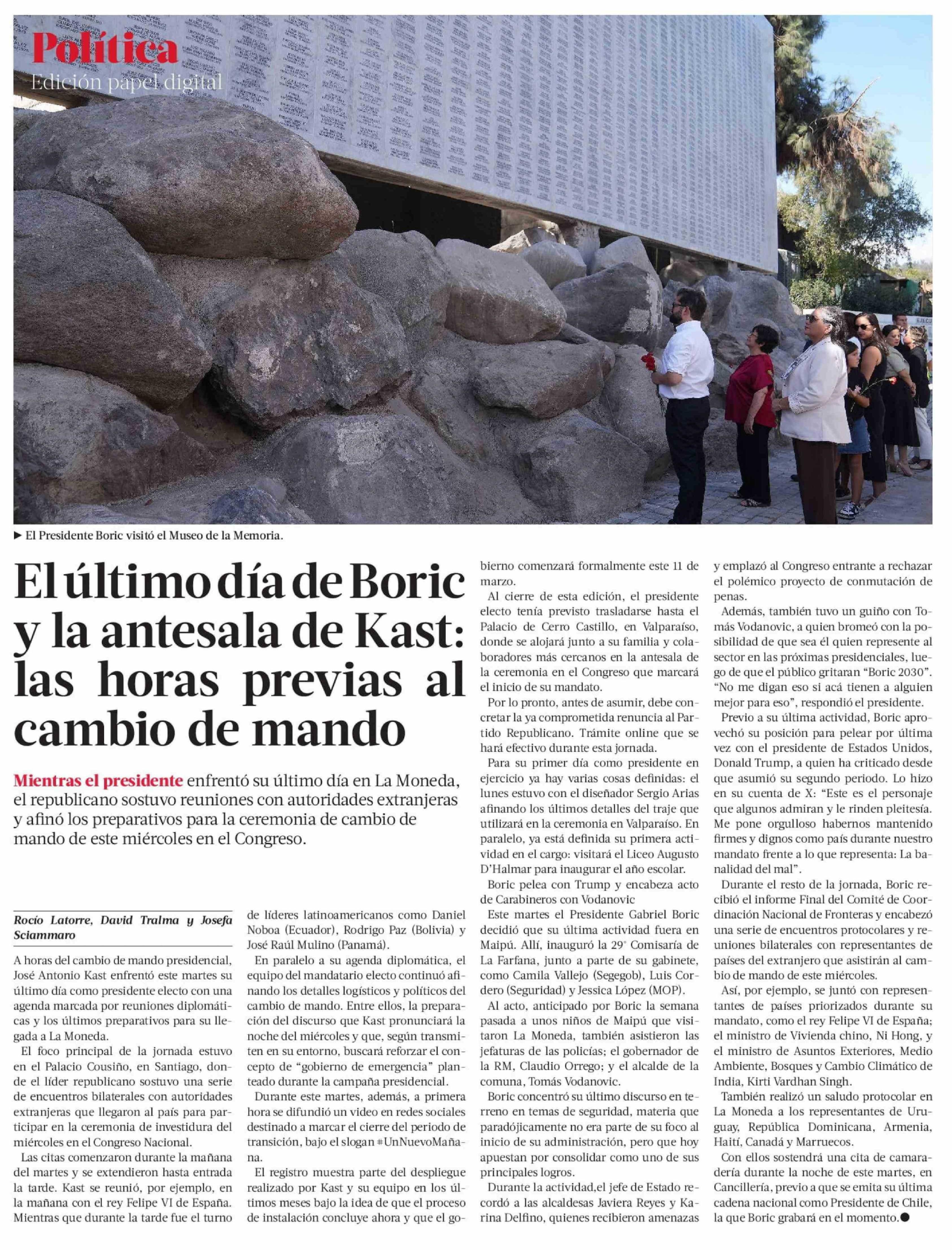 Título: Elúltimo día de Boric y la antesala de Kast: las horas previas al cambio de mando