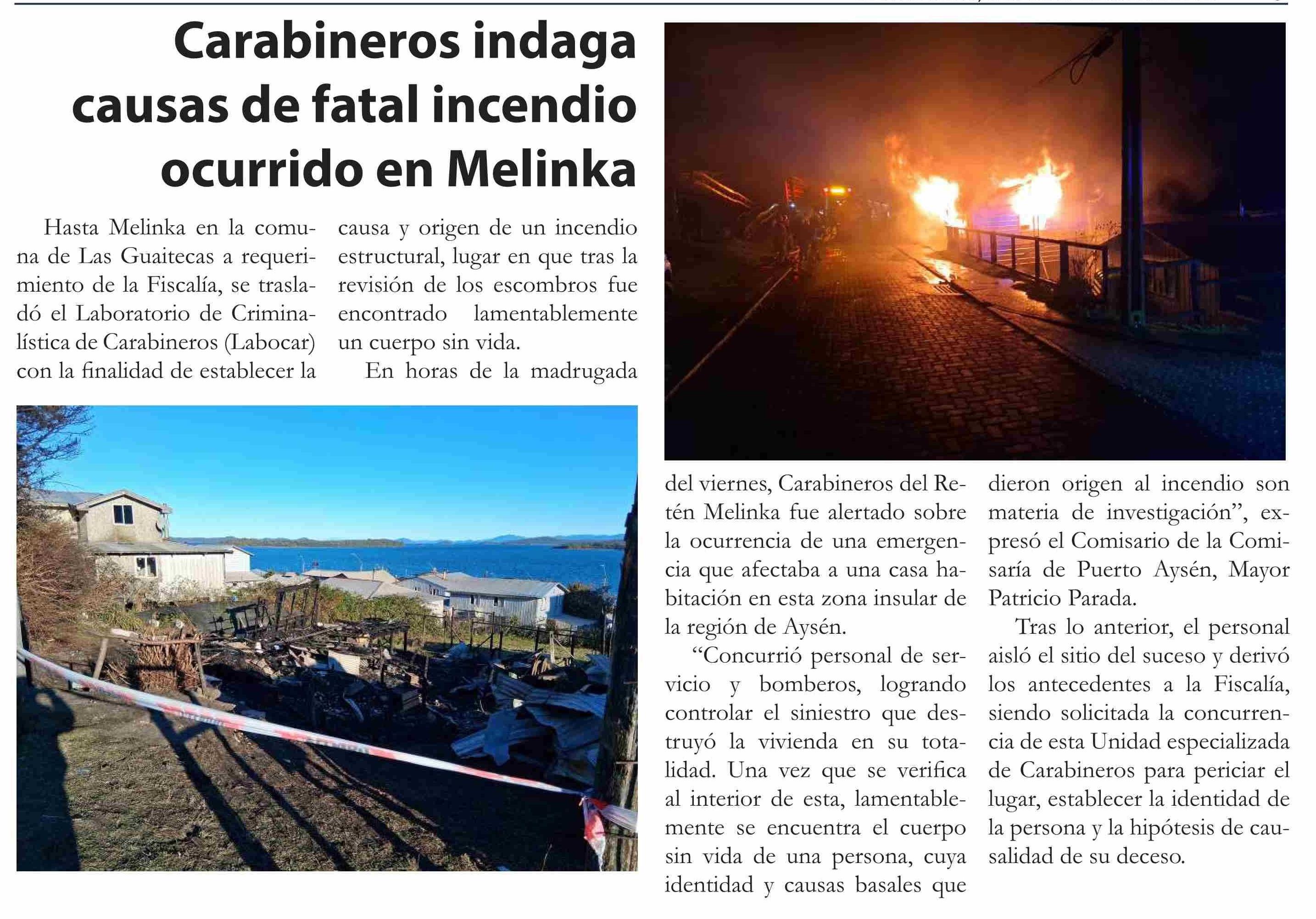 | Título: | Carabineros indaga causas de fatal incendio ocurrido en Melinka |