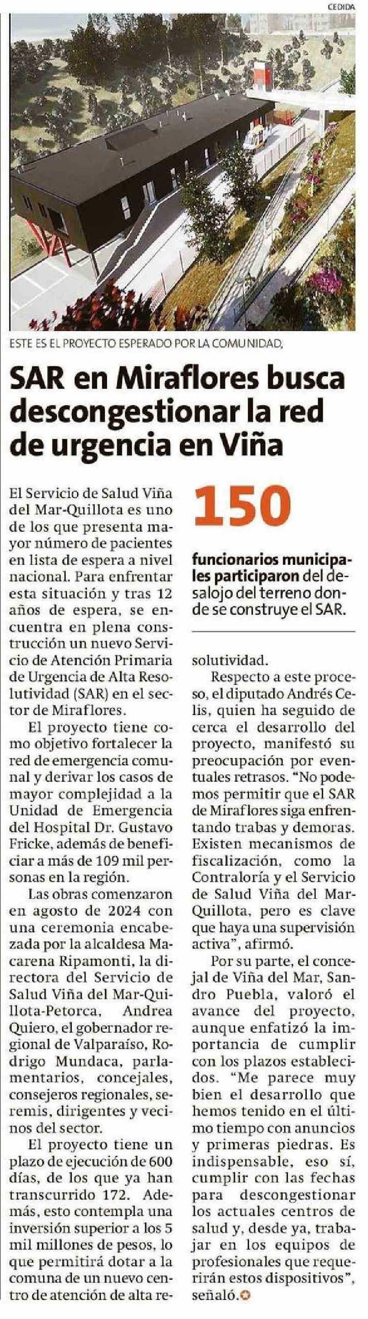 SAR en Miraflores busca descongestionar la red de urgencia en Viña 10-02-2025 La Estrella de Valparaíso |