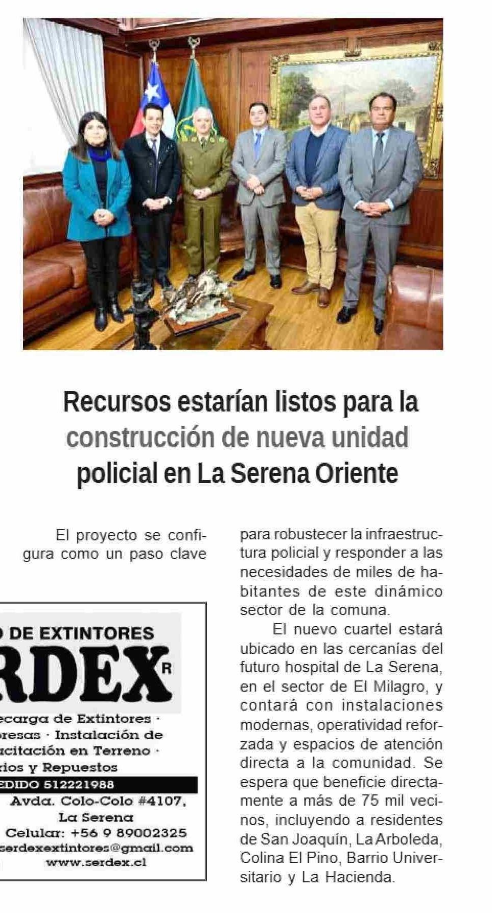 Recursos estarían listos para la construcción de nueva unidad policial en La Serena Oriente 11-06-2025 Diario la Región |