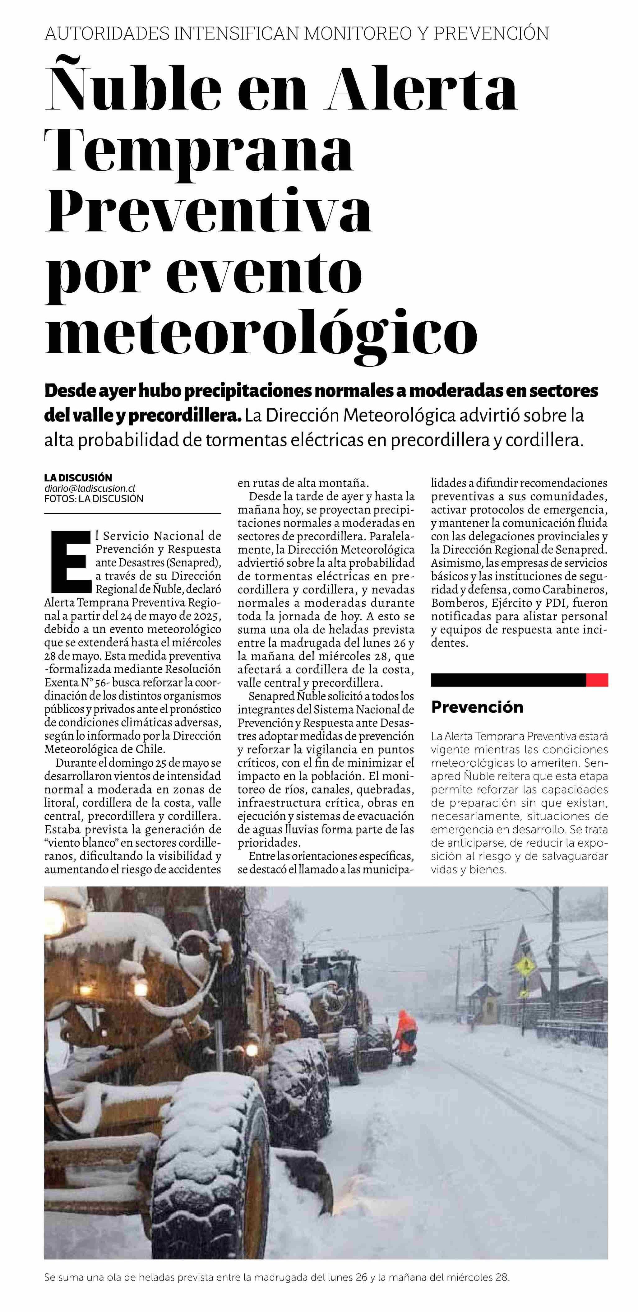 Ñuble en Alerta Temprana Preventiva por evento meteorológico 26-05-2025 La Discusión |