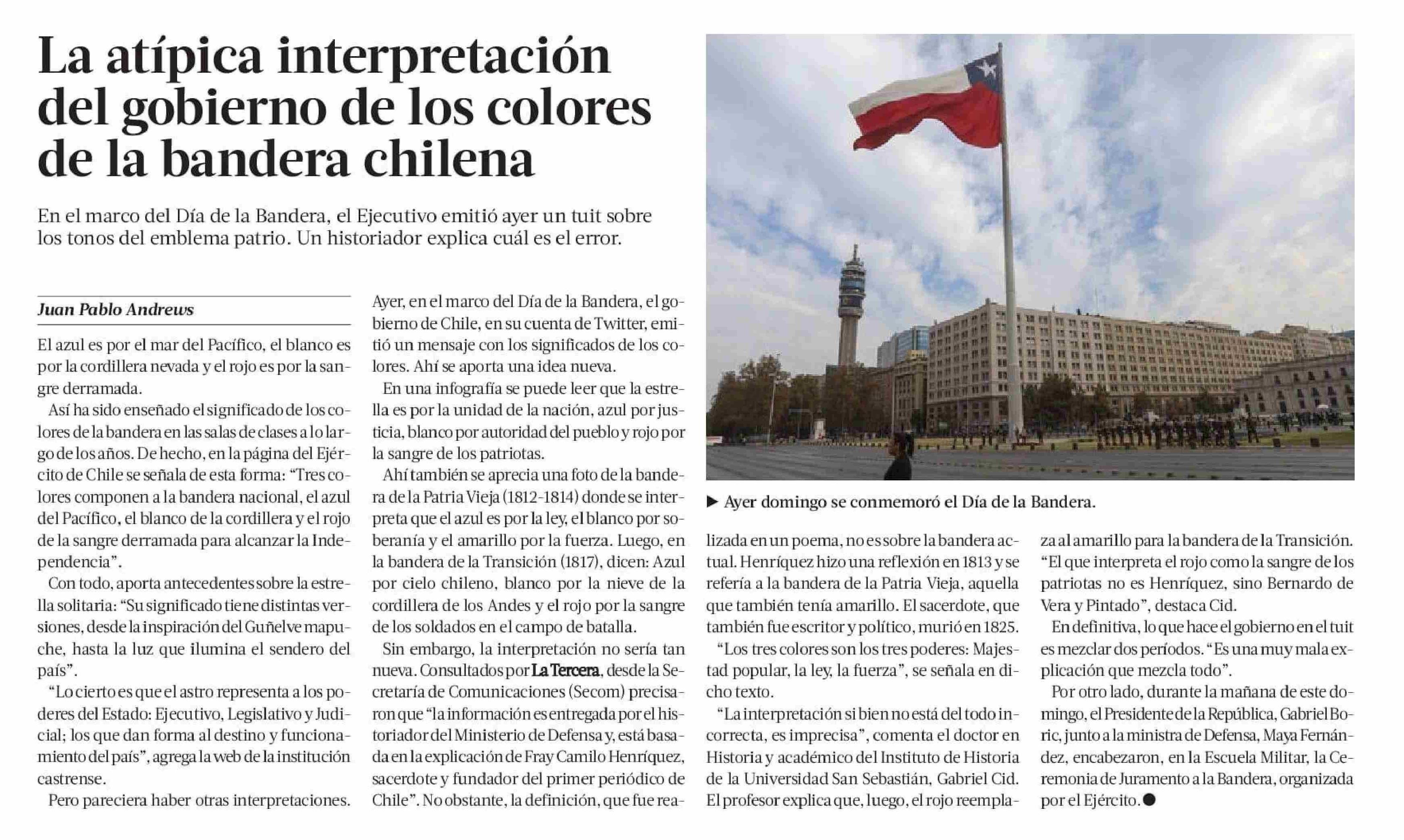 La atípica interpretación del gobierno de los colores de la bandera chilena 10-07-2023 La Tercera |