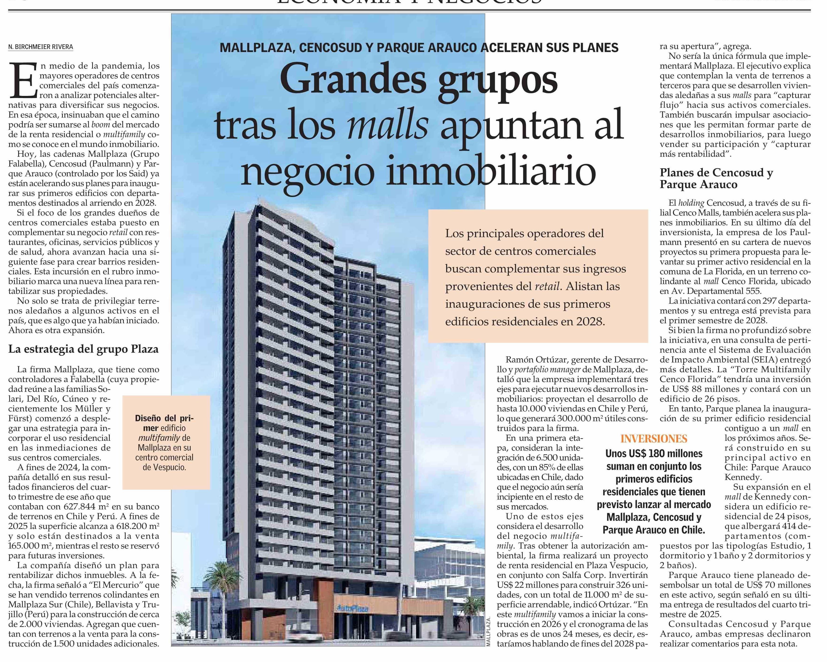 Grandes grupos tras los malls apuntan al negocio inmobiliario 25-04-2026 El Mercurio |
