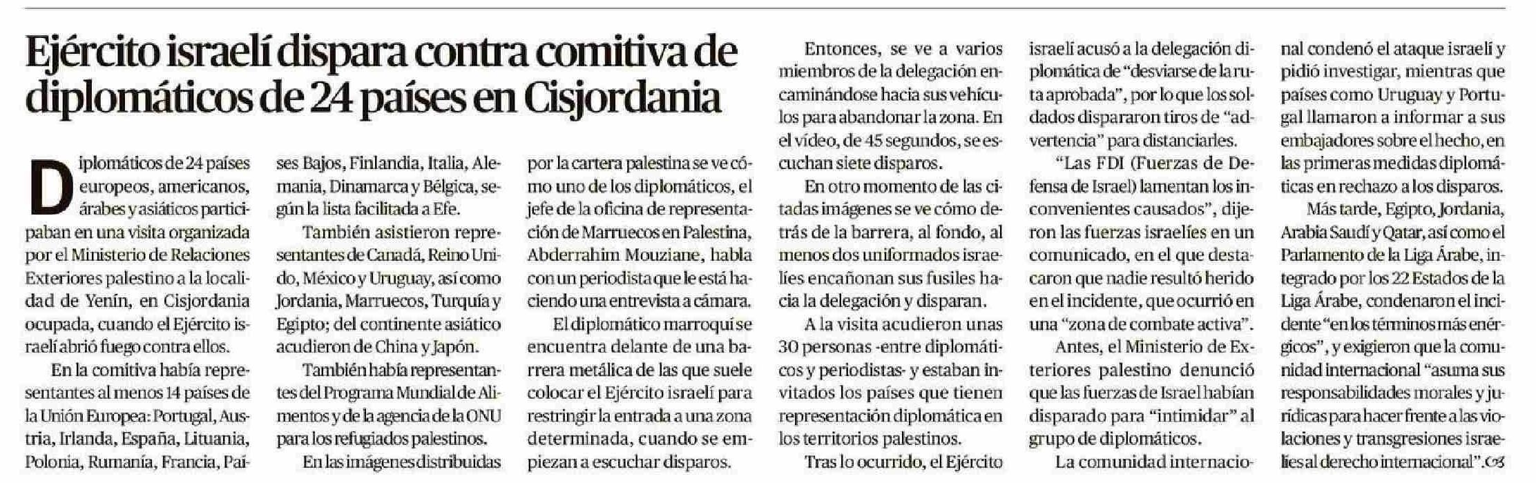 | Título: | Ejército israelí dispara contra comitiva de diplomáticos de 24 países en Cisjordania |