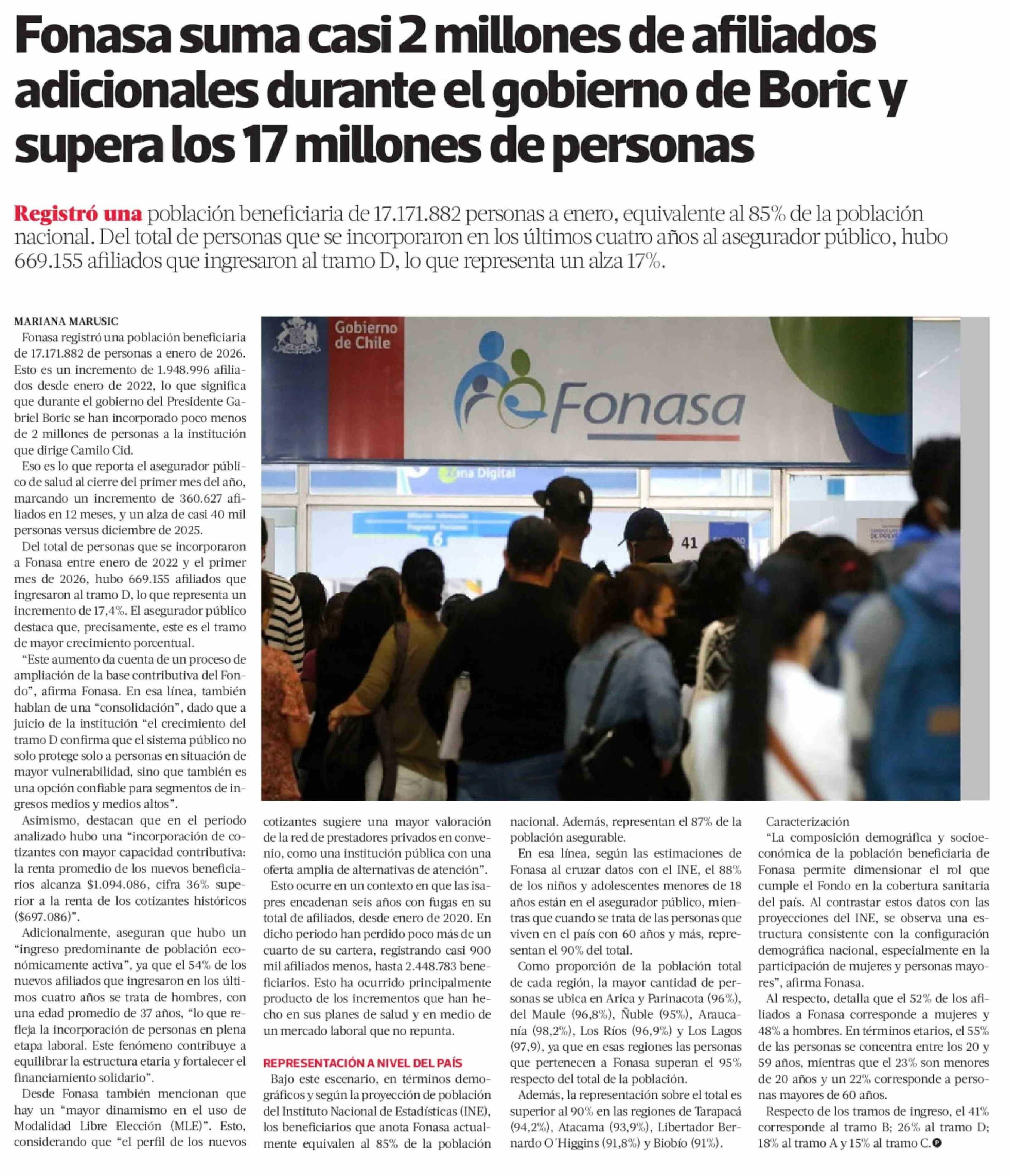 Título: Fonasa suma casi 2 millones de afiliados adicionales durante el gobierno de Boric y supera los 17 millones de personas