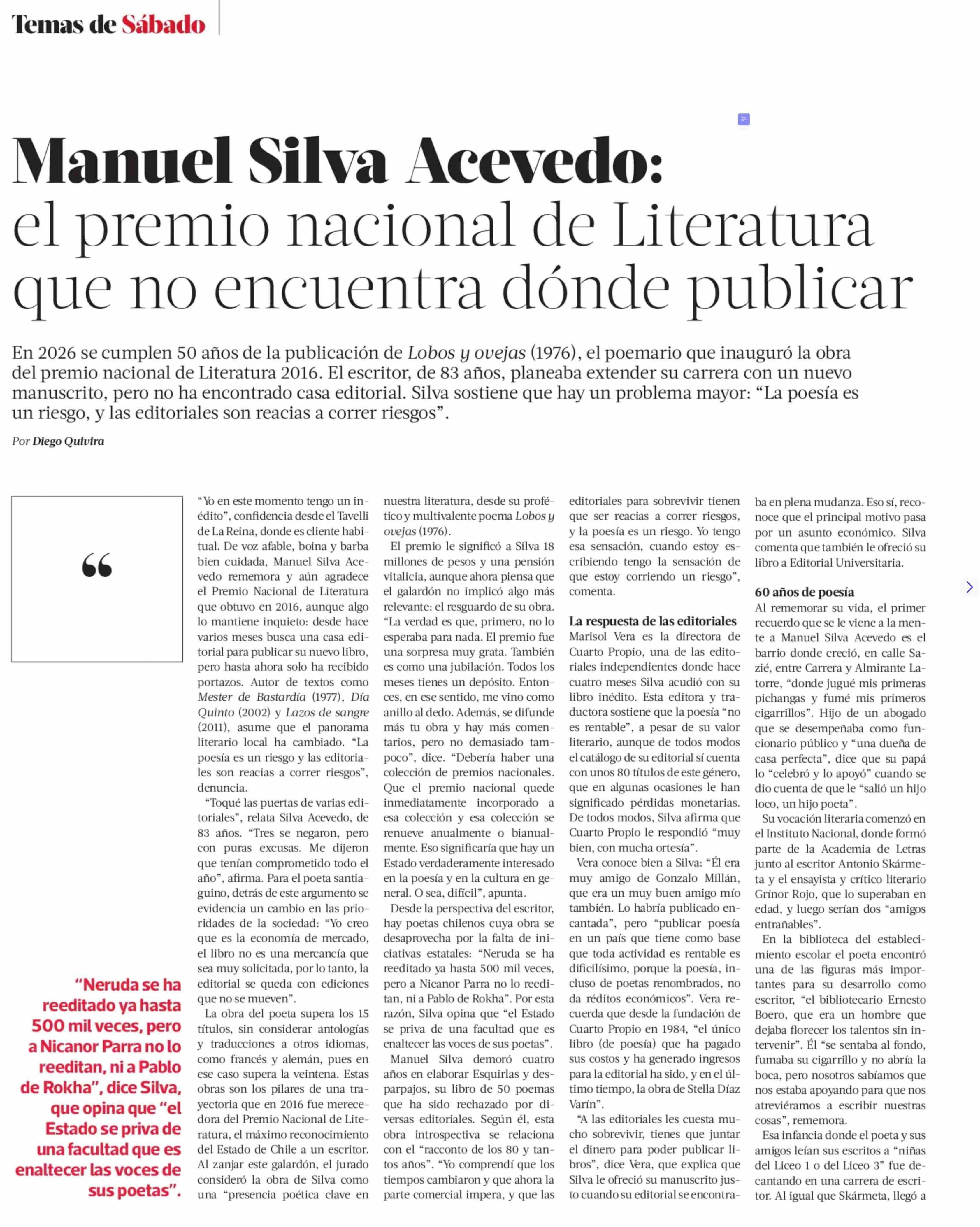 Título: Manuel Silva Acevedo: el premio nacional de Literatura que no encuentra dónde publicar