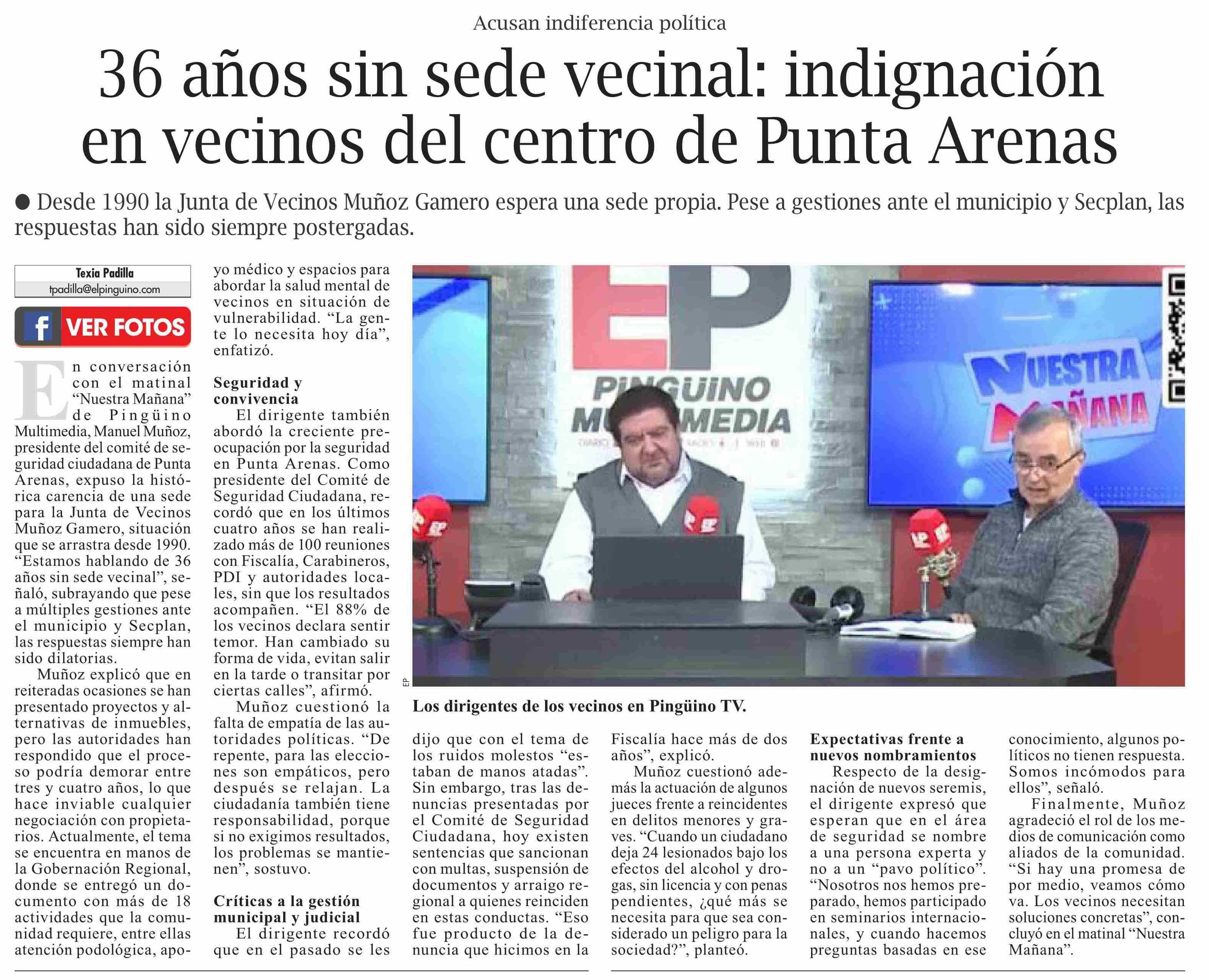 Título: 36 Años sin sede vecinal: indignación en vecinos del centro de Punta Arenas