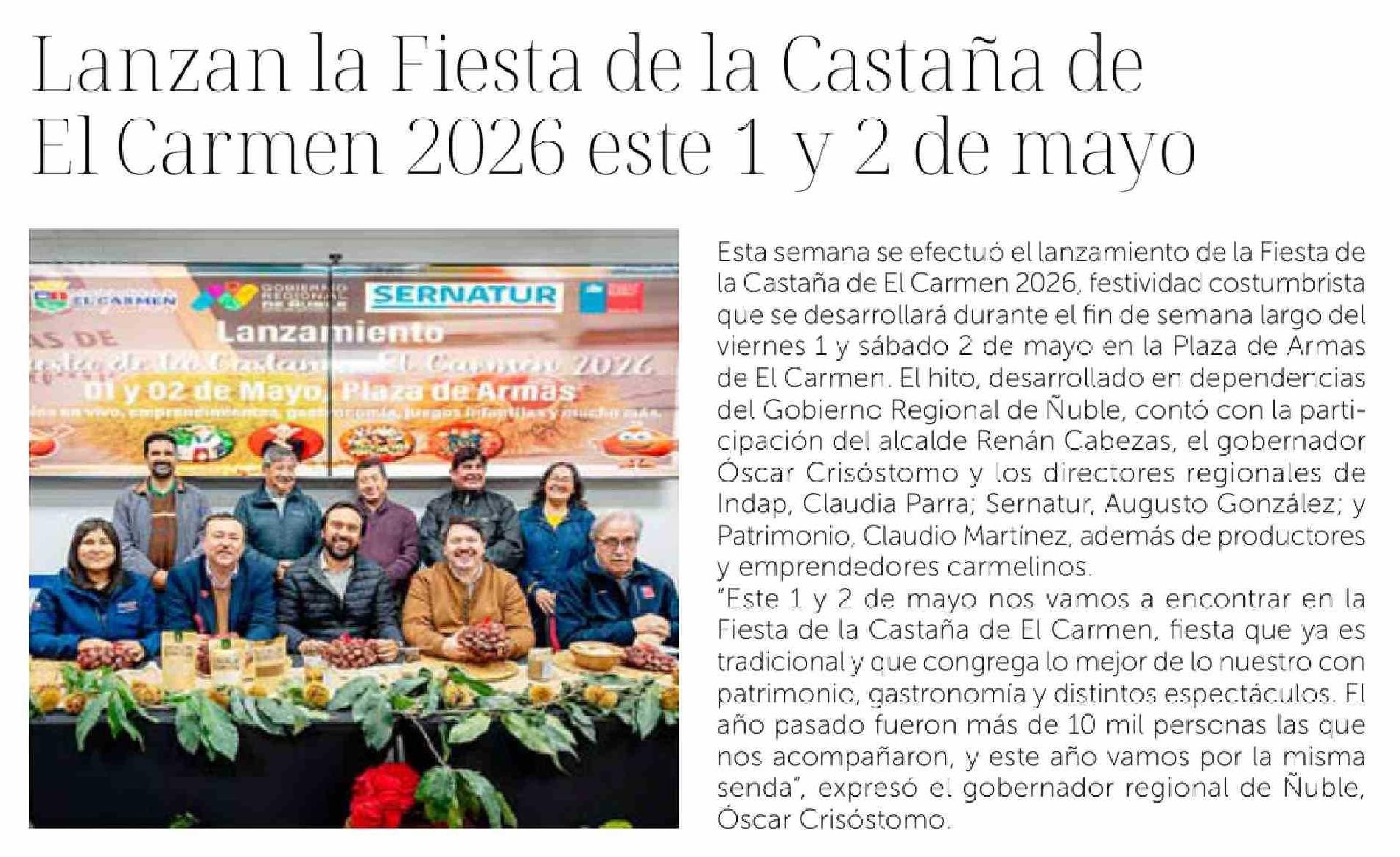 | Título: | Lanzan la Fiesta de la Castaña de El Carmen 2026 este 1 y 2 de mayo |