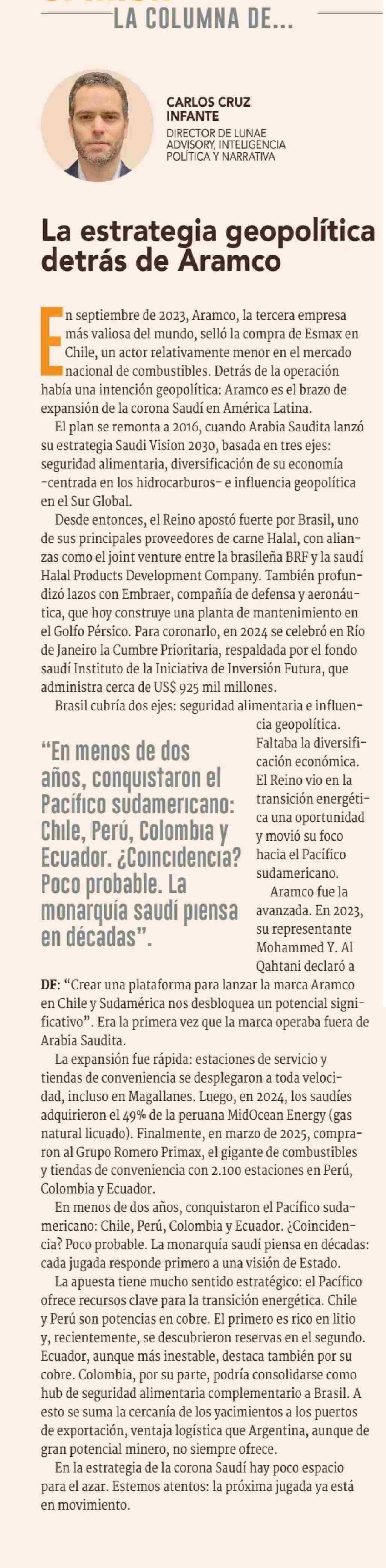 COLUMNAS DE OPINIÓN: La estrategia geopolítica detrás de Áramco 02-05-2025 Diario Financiero |