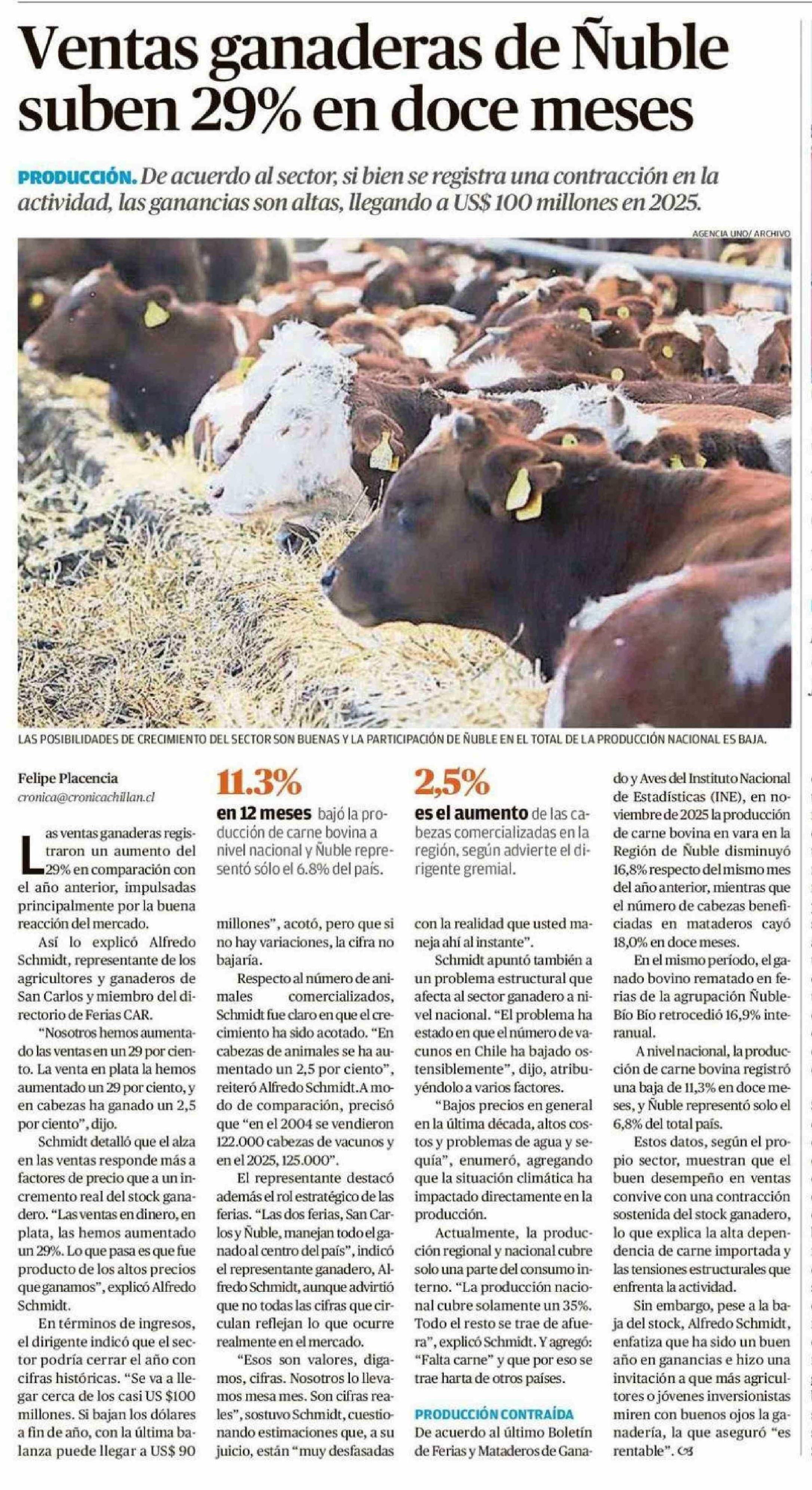 Ventas ganaderas de Ñuble suben 29% en doce meses 14-01-2026 Crónica de Chillán |